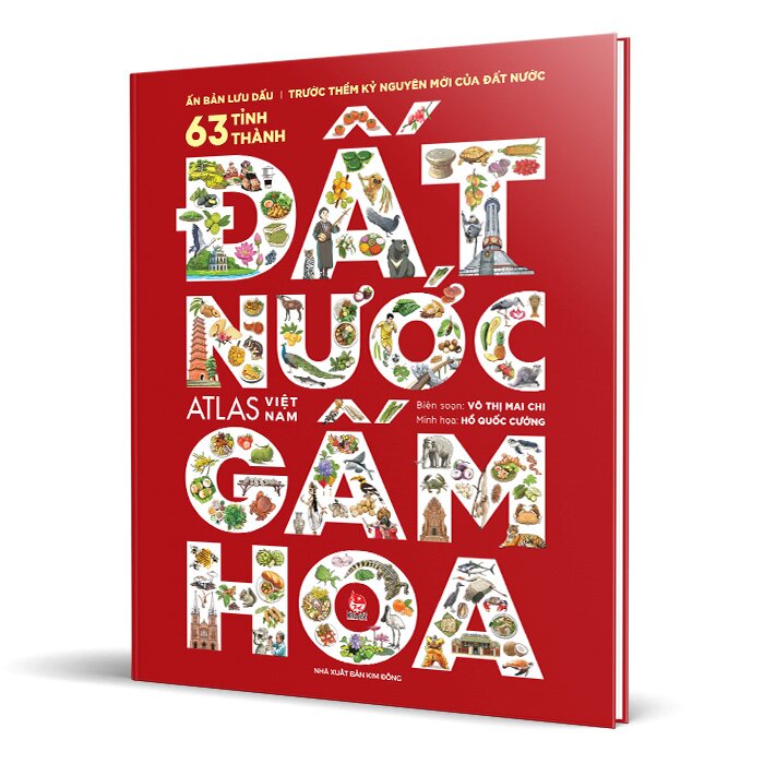 VIỆT NAM CHÚNG TA - KẾT TINH CỦA LỊCH SỬ HÀO HÙNG, THIÊN NHIÊN TƯƠI ĐẸP CÙNG SỨC SÁNG TẠO VÔ BIÊN CỦA CON NGƯỜI. Bạn biết không, đất nước của chúng mình đẹp lắm. Từ những dòng thác tung bọt trắng xóa vùng Tây Bắc đến dòng Cửu Long chở nặng phù sa miền Tây Nam Bộ, từ núi rừng bao la nơi sinh sống của nhiều loài động vật quí hiếm đến vùng hải đảo nơi có những giàn khoan tung bay lá cờ đỏ sao vàng, từ những miền đất cổ kính với bề dày lịch sử đến các thành phố trẻ trung tràn đầy sức sống... tất cả hội tụ trên dải đất hình chữ S tươi đẹp, như một di sản tuyệt vời qua hàng ngàn năm dựng nước và giữ nước mà giờ đây cha ông trao lại cho chúng mình. Hành trình đi dọc theo đất nước từ Bắc vào Nam, lên rừng xuống biển cũng là hành trình khám phá nền văn hóa đặc sắc và đa dạng của cộng đồng 54 dân tộc anh em. Dù chúng mình đang ở nơi đâu trên dải đất hình chữ S, thì bạn và tôi luôn hiểu rằng con đường mình đang đi, món ăn mình đang thưởng thức, công trình mình đang chiêm ngưỡng đều mang theo dấu ấn của lịch sử, của tinh hoa văn hóa đúc kết từ bao đời. Tất cả tạo nên những hoa văn đặc sắc, vừa khác biệt, vừa hòa quyện vào nhau, tạo nên vẻ đẹp lung linh của đất nước gấm hoa. Ngày 12/6/2025 đánh dấu một cột mốc lịch sử của dân tộc khi Quốc hội thông qua Nghị quyết số 202/2025/QH15 - "sắp xếp lại giang sơn" để cả dân tộc bước vào tương lai mới. Nhớ về quá khứ để hướng tới tương lai, Nhà xuất bản Kim Đồng phát hành ấn bản Đất nước gấm hoa phiên bản đặc biệt, lưu dấu những nét văn hoá, địa lí và lịch sử của 63 tỉnh thành trước thềm kỉ nguyên mới của đất nước. Mời bạn cùng thăm lại những miền lưu dấu xuyên suốt dải đất hình chữ S xinh đẹp của chúng ta nhé! **Thông tin về tên gọi, địa giới hành chính, dân số của 63 tỉnh, thành phố trong ấn phẩm này được ghi nhận trước thời điểm Nghị quyết số 202/2025/QH15 ngày 12/6/2025 về việc sắp xếp đơn vị hành chính cấp tỉnh được Quốc hội thông qua. ---