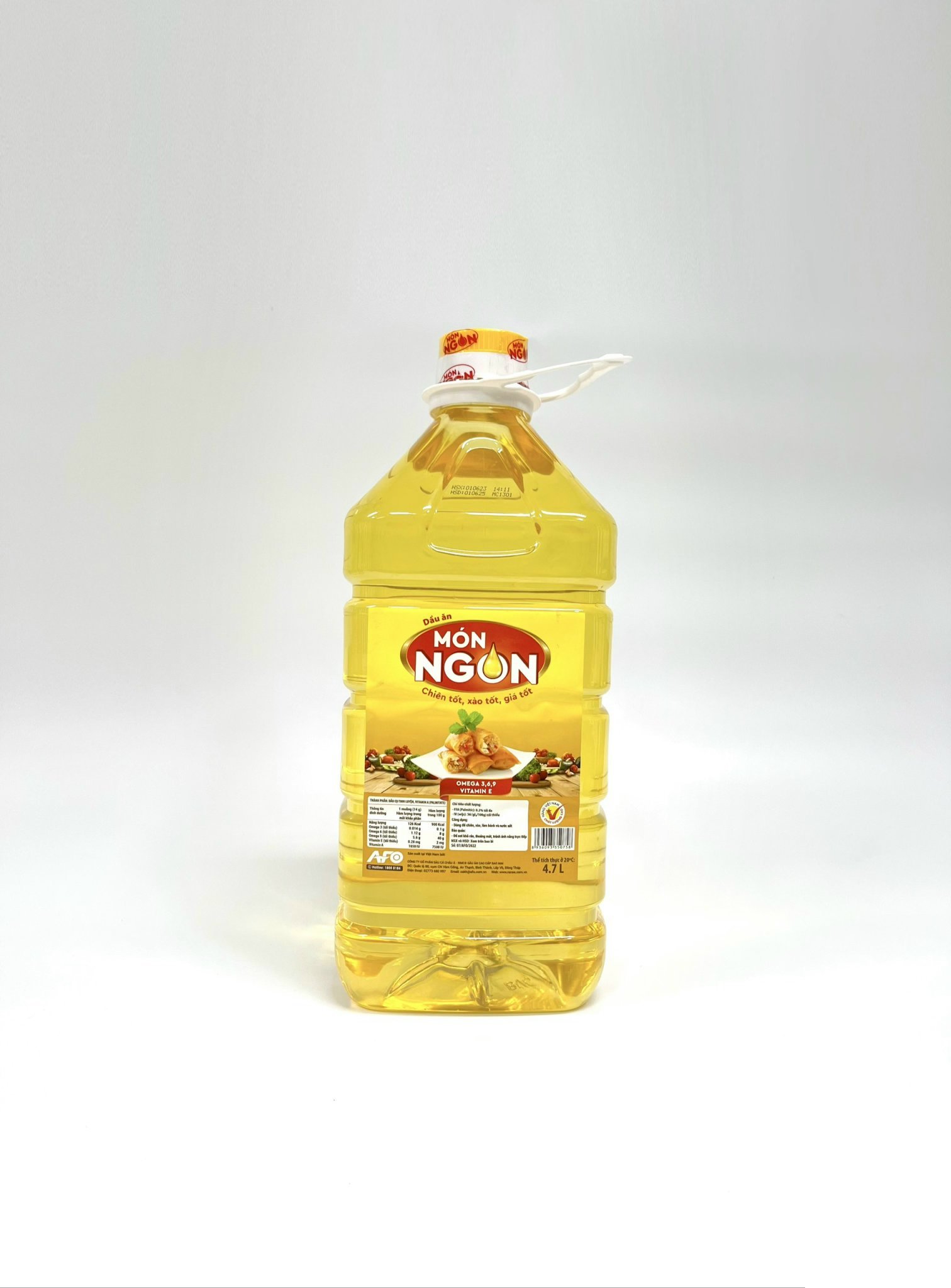 - Dầu ăn thượng hạng Món Ngon là dòng dầu ăn thân thiện, tiết kiệm và phù hợp cho mọi gia đình với thành phần gồm dầu cọ tinh luyện, giúp cho món ăn thơm ngon và bổ dưỡng hơn. Cung cấp Omega 3, 6, 9, Vitamin E tự nhiên tăng cường và bảo vệ các chức năng trong cơ thể. THÀNH PHẦN - Dầu cọ tinh luyện chứa Omega 3-6-9, Vitamin E và Vitamin A. - Hàm lượng dinh dưỡng trong 100g: Omega-3 (min) 300 mg; Omega-6 (min) 10.000mg; Omega-9 45.000mg; Vitamin E (min) 3mg; Vitamin A 7.500 IU CÁCH DÙNG Dầu ăn Món Ngon dùng để chiên, xào, nấu, nướng, trộn salad, làm bánh và làm nước xốt THỂ TÍCH Chai 4.7 lít BẢO QUẢN Để nơi khô ráo, thoáng mát, sạch sẽ, tránh ánh nắng trực tiếp. HẠN SỬ DỤNG 24 tháng kể từ ngày sản xuất THƯƠNG HIỆU Món Ngon NƠI SẢN XUẤT Công Ty Cổ phần Dầu cá Châu Á - QL80, ấp An Thạnh, xã Bình Thành, huyện Lấp Vò, tỉnh Đồng Tháp
