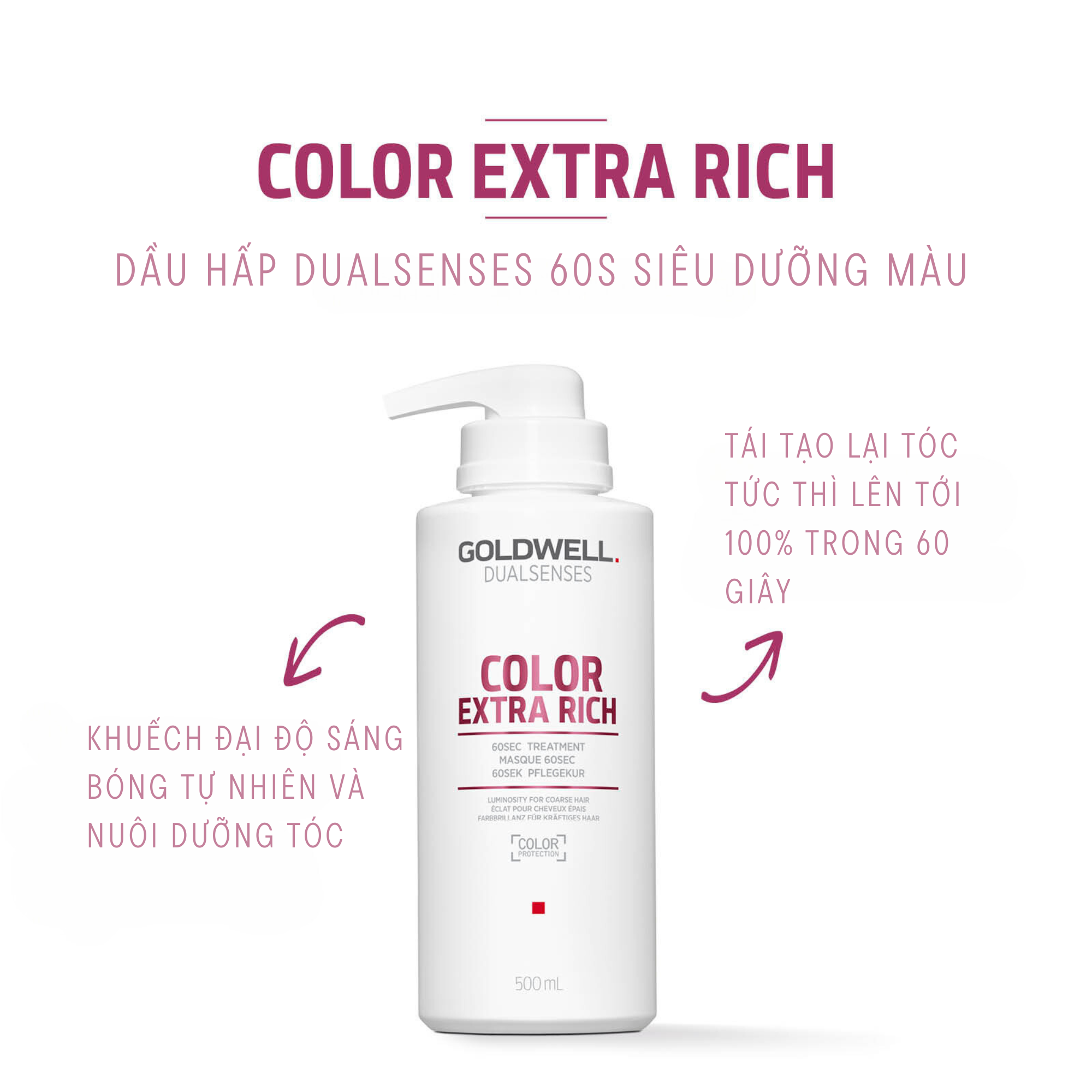 Dầu Hấp 60s Giữ Màu Tóc Nhuộm Goldwell Color Extra Rich Dưỡng Tóc Bóng Mượt, Bền Màu Lâu Phai - Phù hợp với tình trạng tóc: Mọi loại tóc CÔNG DỤNG - Khuếch đại độ
