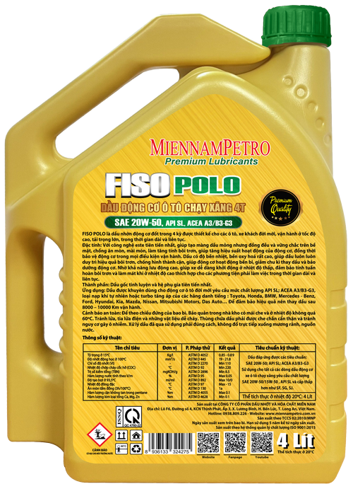 FISO POLO là dầu động cơ gốc khoáng cao cấp được thiết kế cho các ô tô, xe khách đời mới, vận hành ở tốc độ cao, tải trọng lớn, trong thời gian dài và liên tục.
