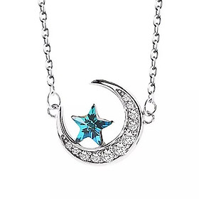 Dây chuyền bạc 925 hinh trăng khuyết sao xanh lấp lánh trẻ trung xinh xắn Dế Bạc - D4296