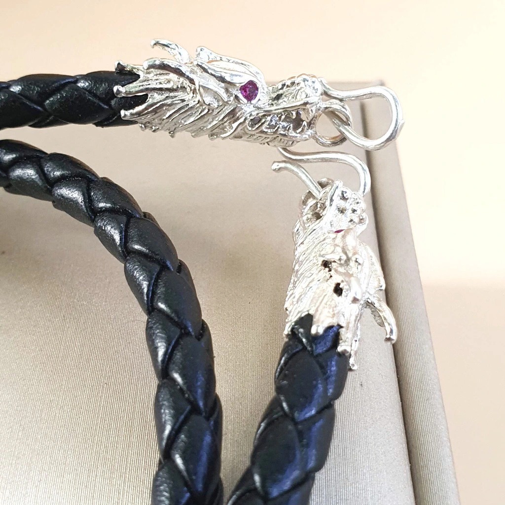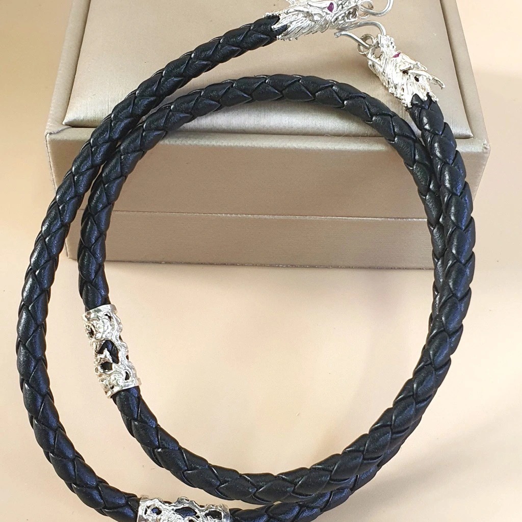 Dây Chuyền Vòng Cổ Dây Da Bọc Bạc Ta Nam Hình Rồng Bạc Hiểu Minh DDN031