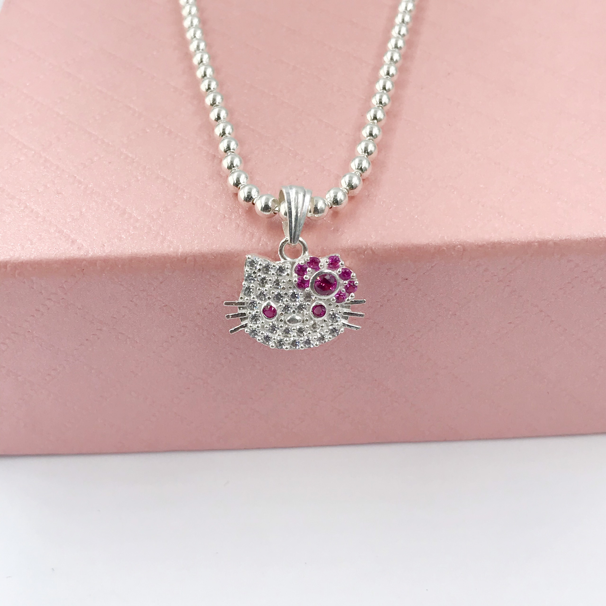 Dây Chuyền, Vòng Cổ Trẻ Em Bạc Ta Nguyên Chất S99 Dây Xoắn Kép Mix Thỏ Nơ Hồng Bạc Hiểu Minh DTE077