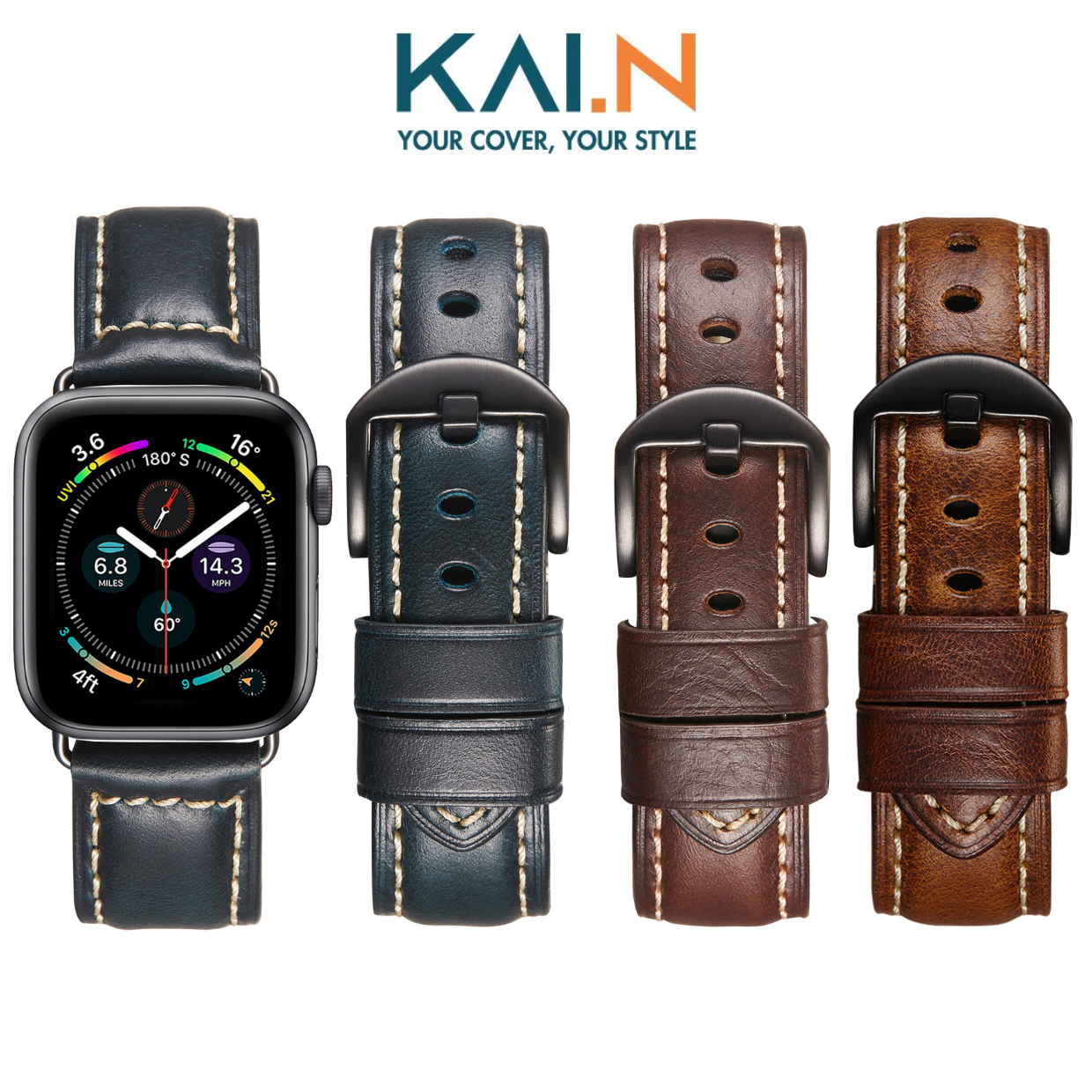 ✨Dây Da Sáp Dầu Kai.N Dành Cho Apple Watch Ultra / Apple Watch Series 1-8/SE/SE2022, Kai.N Classic Italia Leather - Hàng Chính Hãng