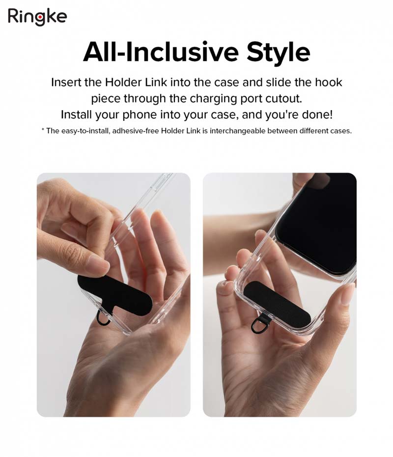 - Với dây Holder Link Strap có miếng holder link black (màu đen) KHÔNG TƯƠNG THÍCH với ốp RINGKE SLIM