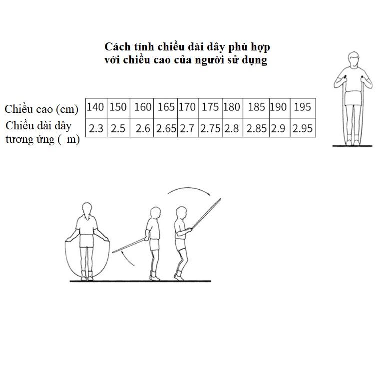 • Màu sắc: Đỏ, Xanh Lá, Xanh Dương, Xám Lưu ý: Có thể sử dụng cả trong phòng hoặc ngoài trời. Nên sử dụng với thảm tập, hạn chế tập trên đường mấp mô, lởm chởm, có sắc cạnh. Sử dụng nơi khô ráo, thoáng mát. Treo dây thẳng sau khi tập sẽ giúp dây bớt vặn xoắn, dễ dàng sử dụng lần sau. Thời gian bảo hành,1 tháng đổi mới trong vòng 15 ngày, nếu có lỗi của nhà sản xuất. CÂU HỎI THƯỜNG GẶP: 1️ Chọn các kích thước dây nhảy thế nào ? ● Thường cách đo hiệu quả nhất là đo dài dây lấy căn từ phần ngực tới chân. 2️ Nên chọn màu, chất liệu như thế nào? HỆ THỐNG dododiosCAM KẾT: