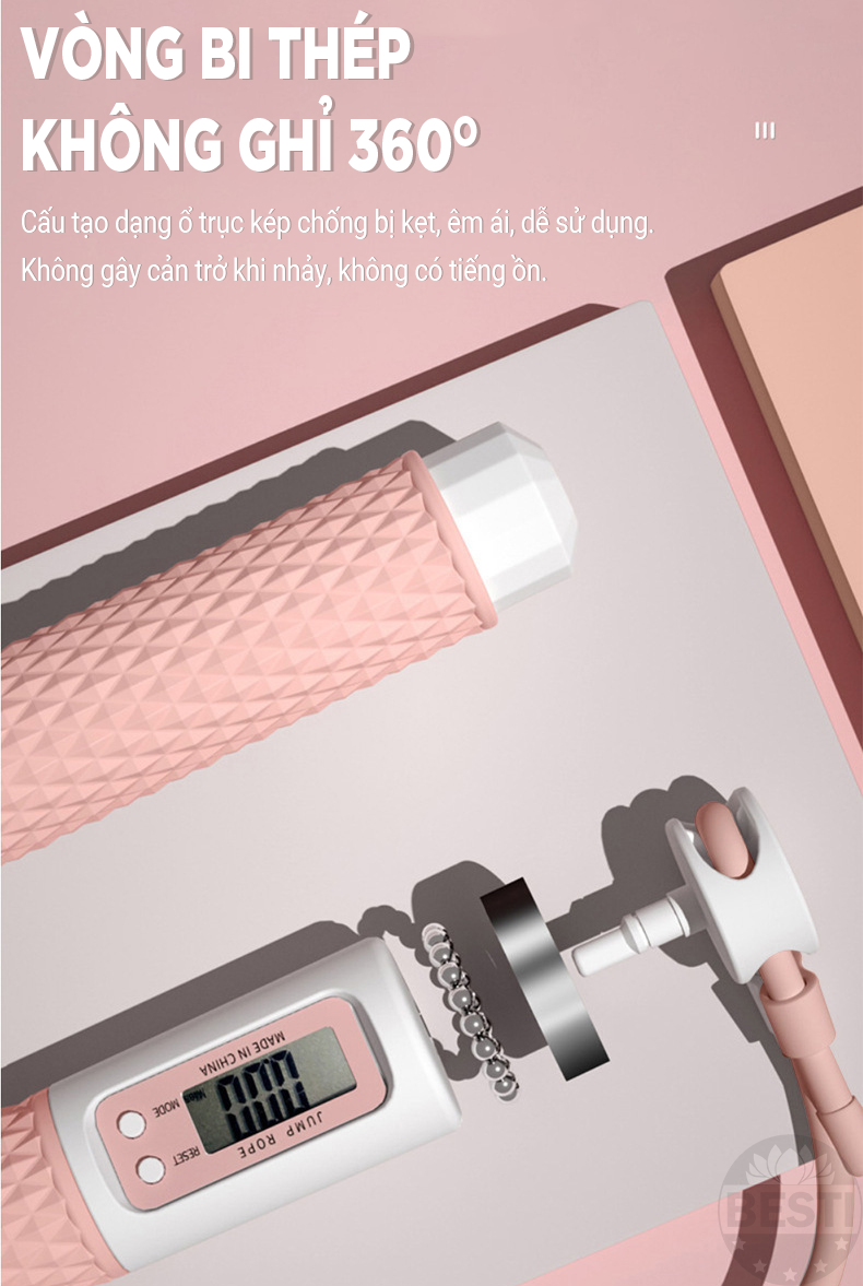✨Dây Nhảy Thể Thao Lõi Thép Cao Cấp Besti Tự Động Đếm Số, Tích Hợp Đo Calo, Quãng Đường, Độ Dài Dây Tùy Chỉnh - Kèm Bóng Xoay Và Tạ Điều Chỉnh Khối Lượng - Hàng Chính Hãng