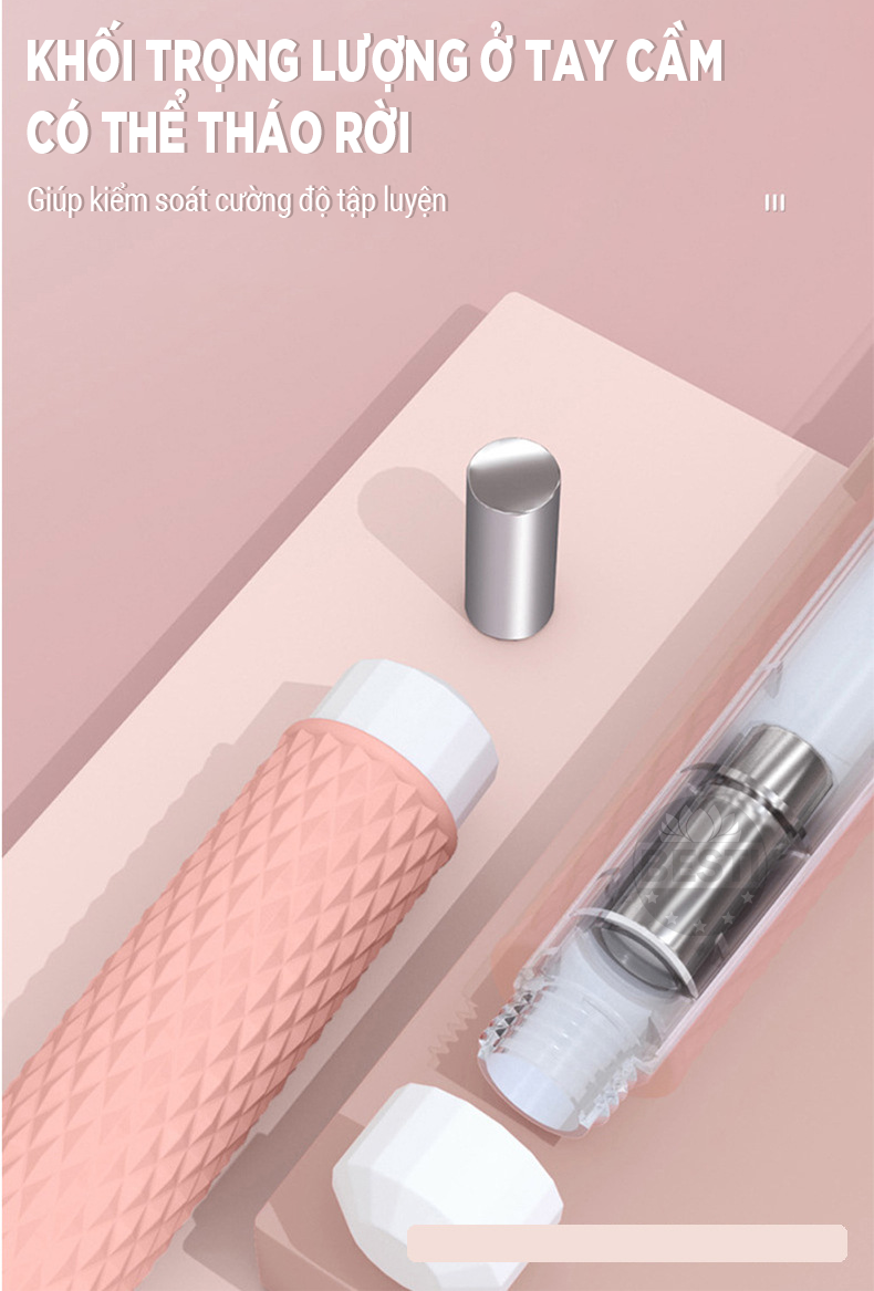 • Phần tạ sắt (có thể tháo rời) giúp người sử dụng dễ dàng kiểm soát cường độ tập luyện.