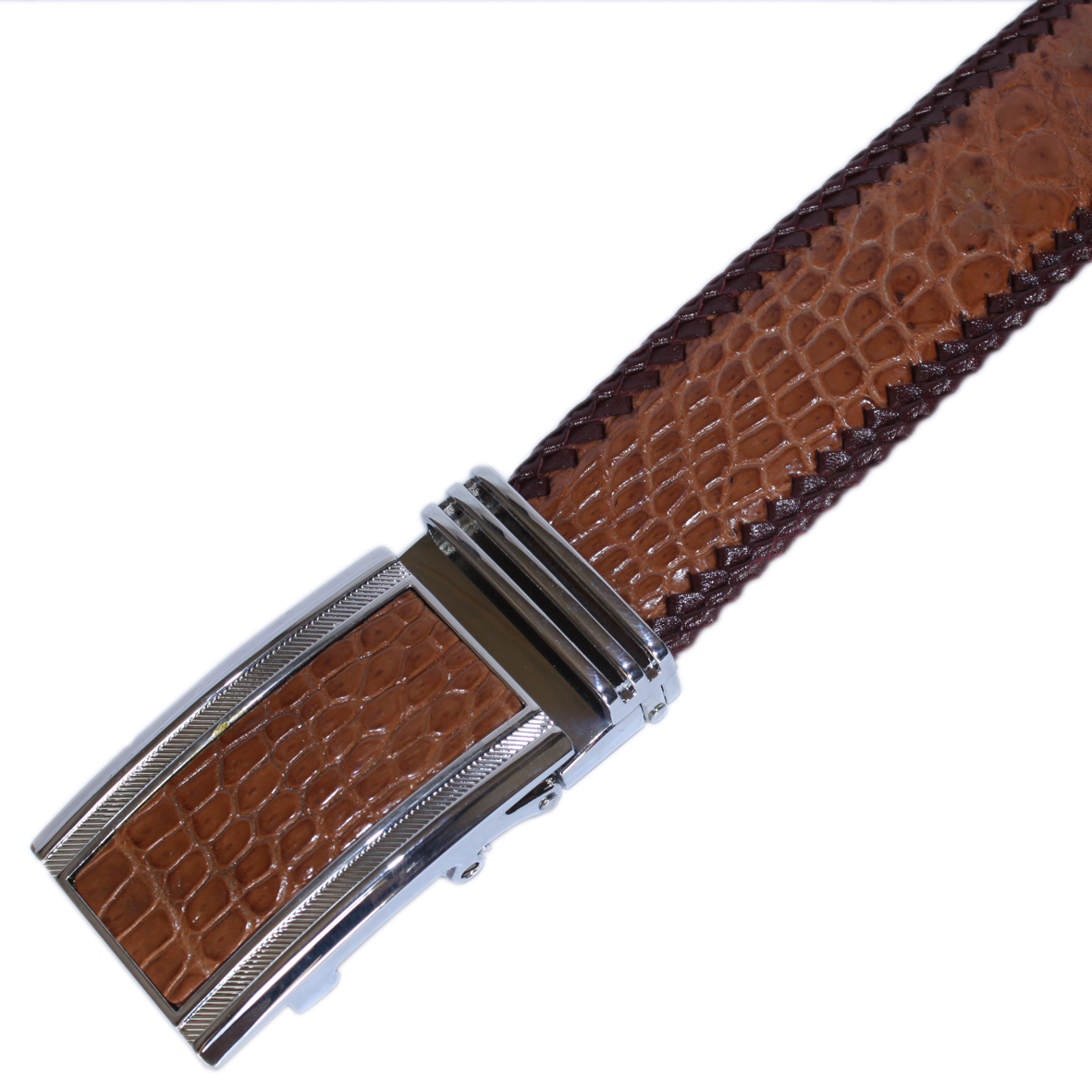 Dây nịt da cá sấu màu nâu đỏ da bụng