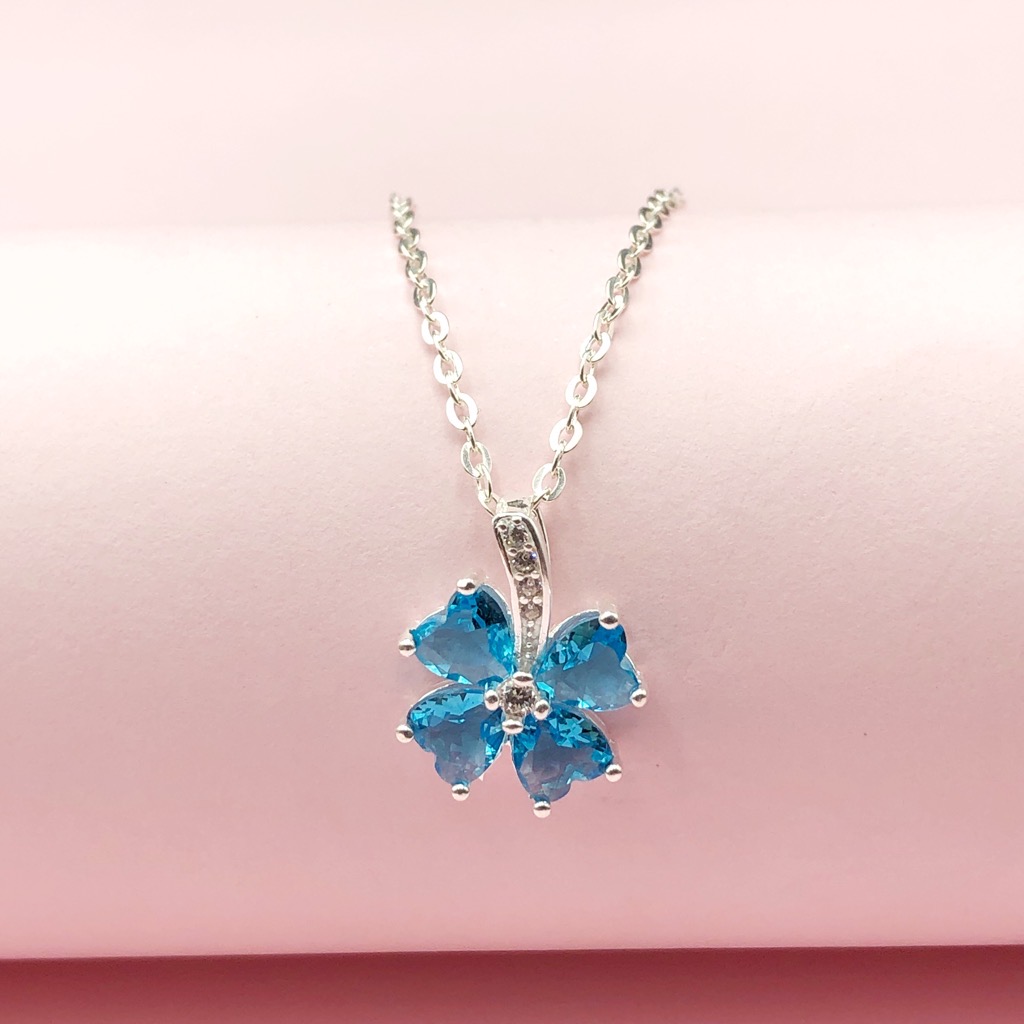 ✨Dây Và Mặt Dây Chuyền Nữ Cỏ 4 Lá May Mắn Màu Xanh BẠC HIỂU MINH DMD015BL