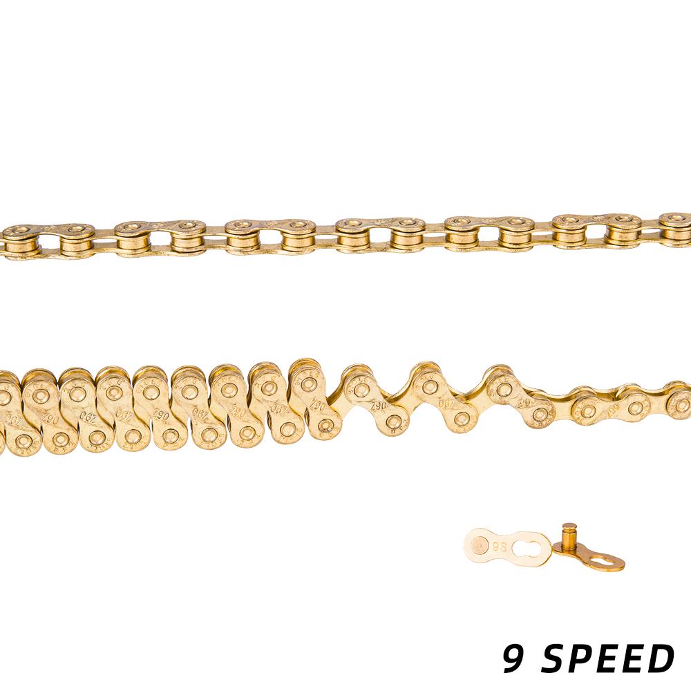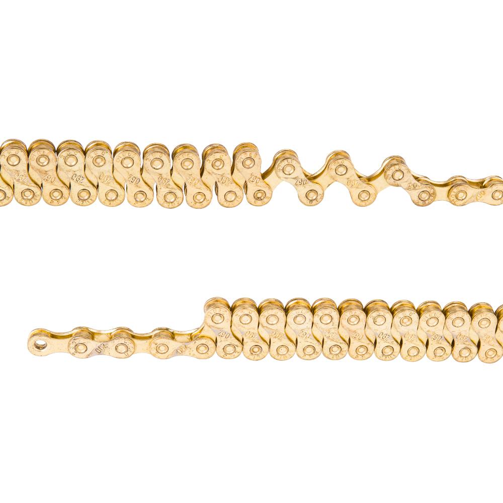 Features: The Mushroomed pin design also have better pin power and greater overall strength. The Titanium Nitride coating on the Gold chainss decreases corrosion and reduces friction. The ZTTO chains's links have a smooth radius,