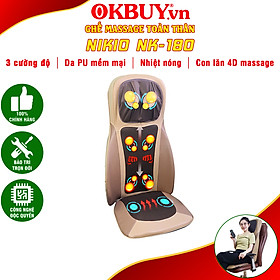 Ghế massage lưng, cổ, mông xoa bóp day ấn rung, nhiệt hồng ngoại Nikio NK-180 - Dùng được trên ô tô