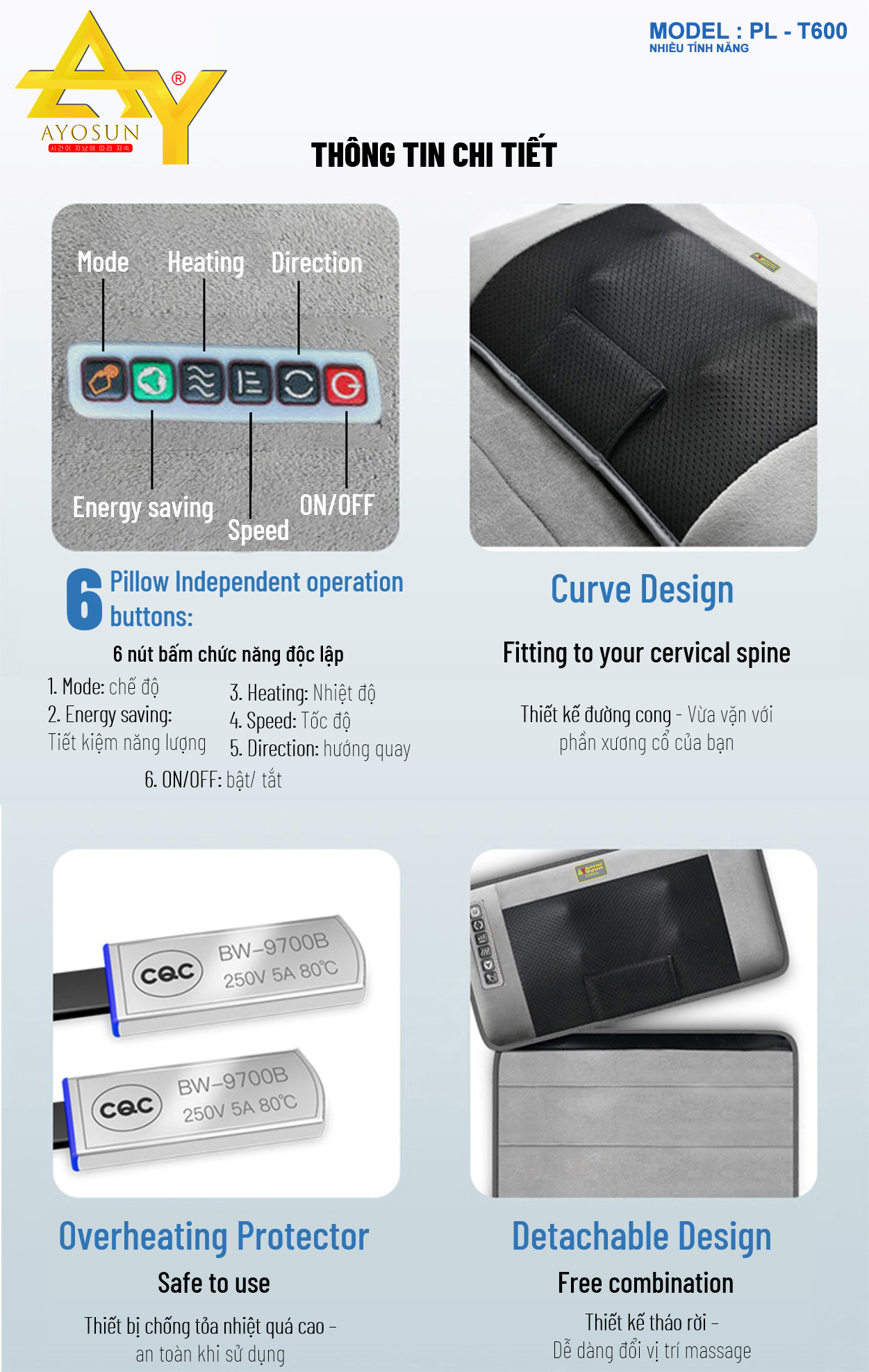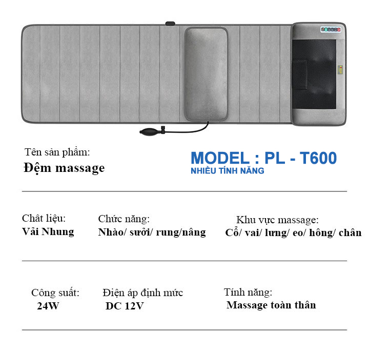 Giới thiệu nệm massage toàn thân aYosun PL - T600 - đệm massage toàn thân, rung xoa bóp nhào nặn có chế độ nhiệt hồng ngoại
