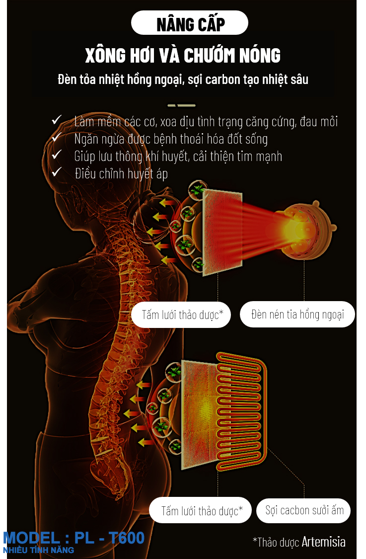 Công nghệ massage khí nén với 7 túi khí được điều khiển độc lập Mô phỏng chính xác các tư thế Yoga tác động đến phần cơ lưng hông vai 6 Trương trình được lập