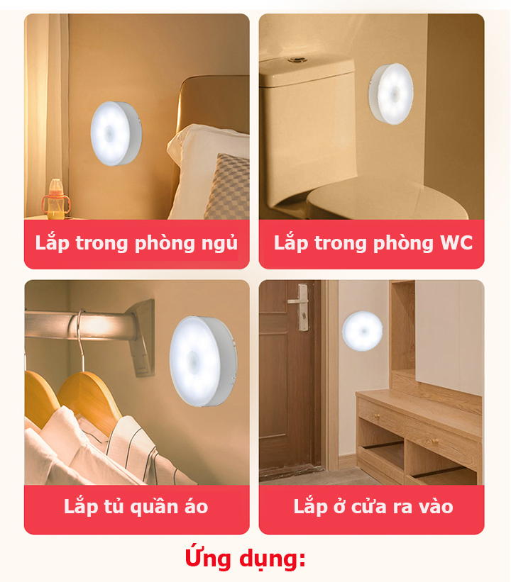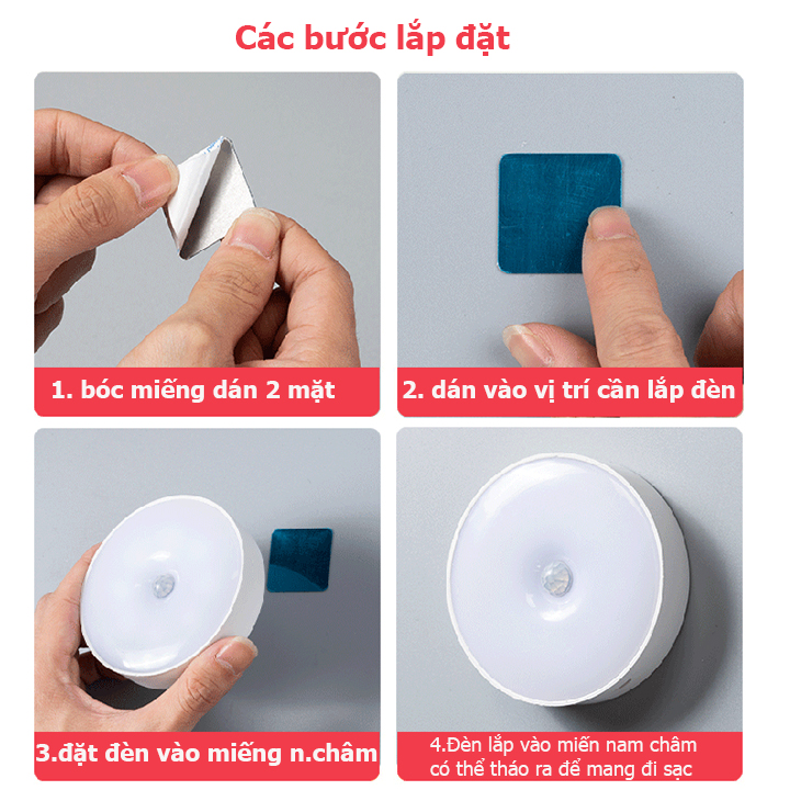 - Đèn led cảm ứng thông minh dán tường sử dụng phù hợp các nơi với nhiều chức năng tiện dụng.