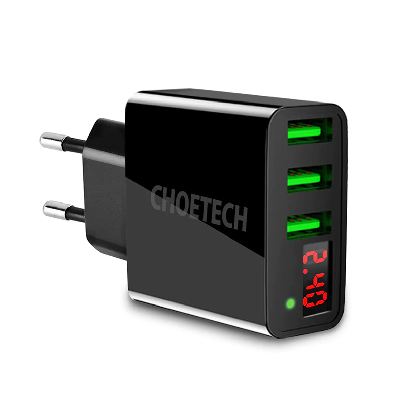 Cóc củ sạc nhanh 15W 3 cổng USB hiệu CHOETECH C0026 cho điện thoại / máy tính bảng Samsung iPhone Huawei Oppo Xiaomi (sạc nhanh 2.4A / Port, 3 Port USB, Max 3A, trang bị LED hiển thị)       HỖ TRỢ CÔNG NGHỆ SẠC NHANH Tích hợp chip sạc thông minh cung cấp tốc sạc nhanh phù hợp cho thiết bị của bạn. Với công suất tối đa lên Cao dòng tối đa 3A và mỗi port đạt tối đa 2.4A       HỖ TRỢ SẠC 3 THIẾT BỊ CÙNG LÚC 3 cổng sạc cho phép sạc được 3 thiết bị cùng lúc. Cho dòng và công suất ổn định cực cao, không gây hại thiết bị và không gây nóng.       TRANG BỊ HỆ THỐNG CHIP AN TOÀN Tăng cường thêm lớp bảo vệ, kiểm soát nhiệt độ và các tính năng an toàn tiên tiến hơn giữ cho bạn và các thiết bị của bạn khỏi sạc quá dòng, rò rỉ điện.       ĐẠT TIÊU CHUẨN AN TOÀN Được chế tạo bằng những vật liệu tốt của ngành công nghiệp và bảng mạch cao cấp. Mỗi sản phẩm sạc được kiểm nghiệm nghiêm ngặt để đảm bảo độ an toàn và đã đạt được chứng chỉ an toàn quốc tế       THIẾT KẾ NHỎ GỌN Thiết kế nhỏ gọn và có thể gập lại được, CHOETECH C0026 là một trong những củ sạc 3 cổng USB nhỏ gọn trên thị trường, dễ dàng cho bạn mang theo trong các chuyến du lịch.        MÀN HÌNH LED BÁO DÒNG ĐIỆN Sản phẩm trang bị màn hình led 2 màu đèn, với màu xanh lá báo dòng điện (V) và đèn màu xanh dương báo cường độ dòng điện (A) để bạn dễ dàng theo dõi quá trình sạc.      HÌNH ẢNH SẢN PHẨM