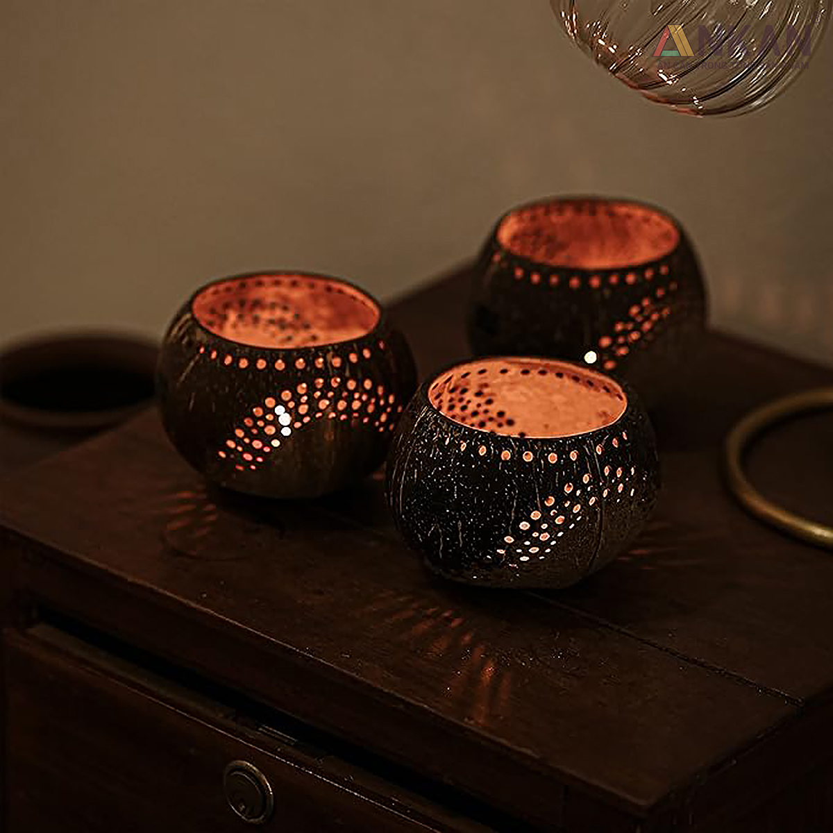 ĐÈN GÁO DỪA ĐỰNG NẾN TEALIGHT – ĐẸP TỰ NHIÊN, ÁNH SÁNG THƯ GIÃN
