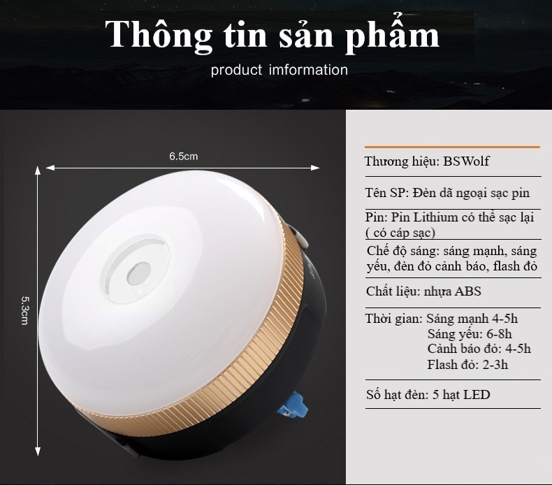 THÔNG TIN SẢN PHẨM: - Tên sản phẩm: Đèn led dã ngoại sạc điện đa năng - Mã sản phẩm: BSW-DJ008 - Chất liệu: Nhựa ABS - Kích thước: 6.5*5.3cm - Cân nặng: 160g -