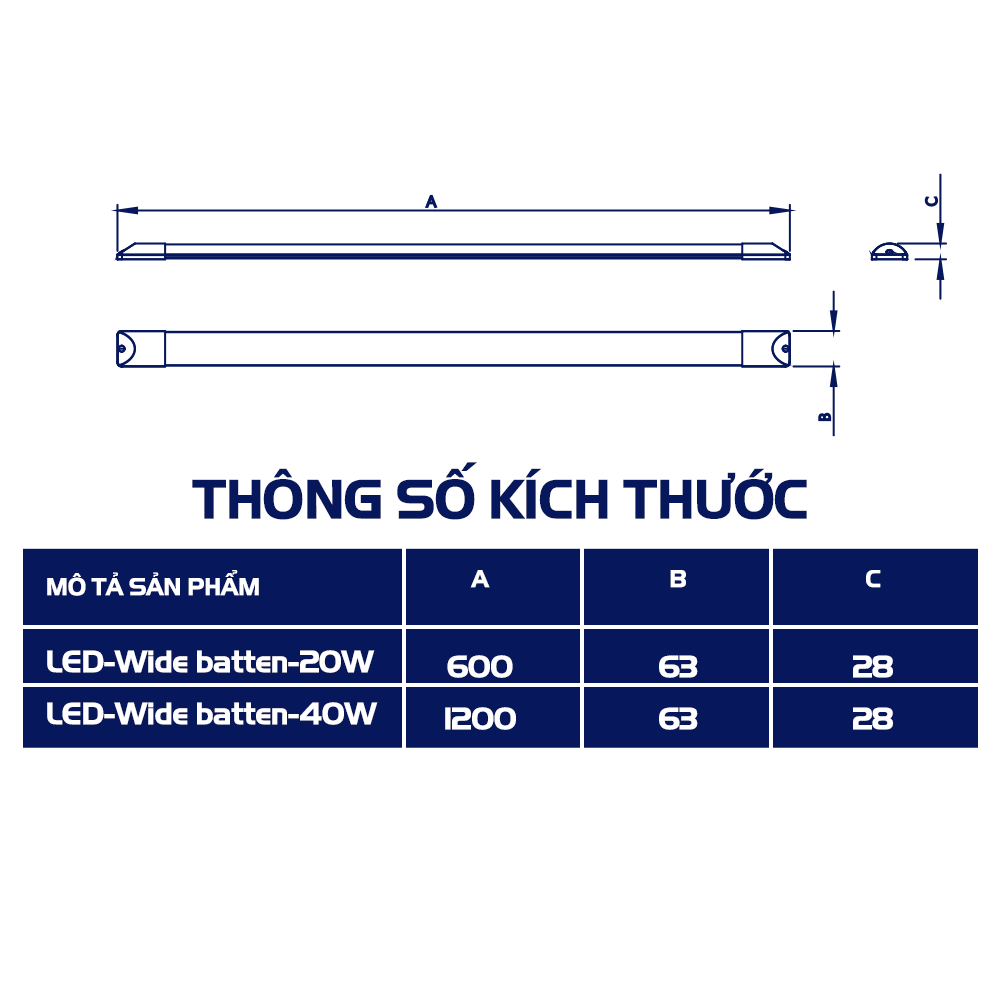Thông số kỹ thuật: Công suất Chiều dài Màu ánh sáng Quang thông