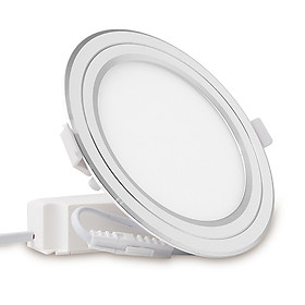 Đèn LED âm trần downlight đổi màu 12W viền bạc MODEL: AT10 ĐM 110/12W Điện áp hoạt động: 220V/50Hz Quang thông: 1200lm Đổi 3 màu: 6500K/3000K/4000K Kích thước (ØxH): (138x36)mm ĐK lỗ khoét trần: 110mm