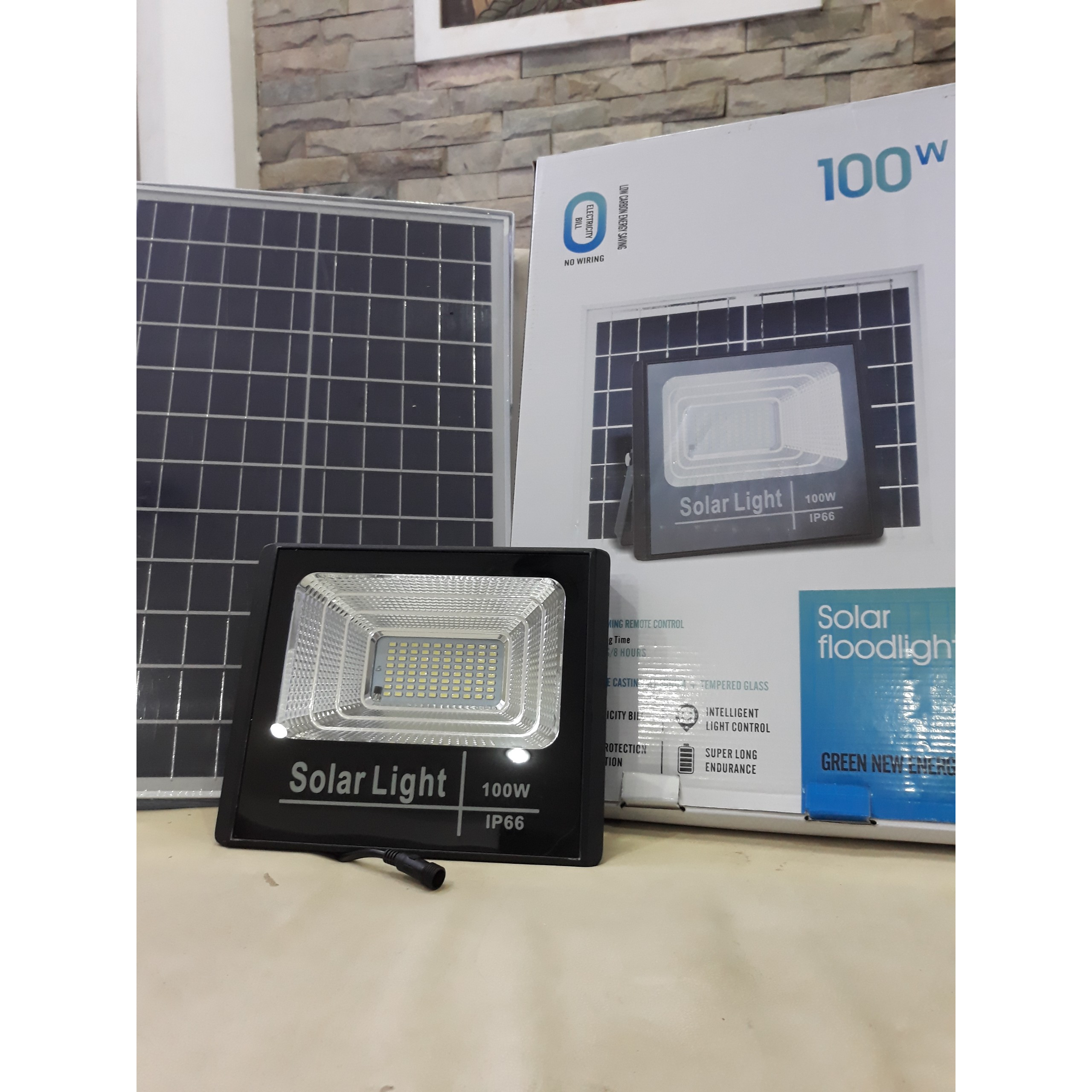 ĐÈN NĂNG LƯỢNG MẶT TRỜI 100w Giới thiệu sản phẩm Đèn LED năng lượng mặt trời 100w. Sử dụng chiếu sáng như đèn sân vườn cho biệt thự, đèn đường, đèn chiếu, đèn cho các khu đất rộng,