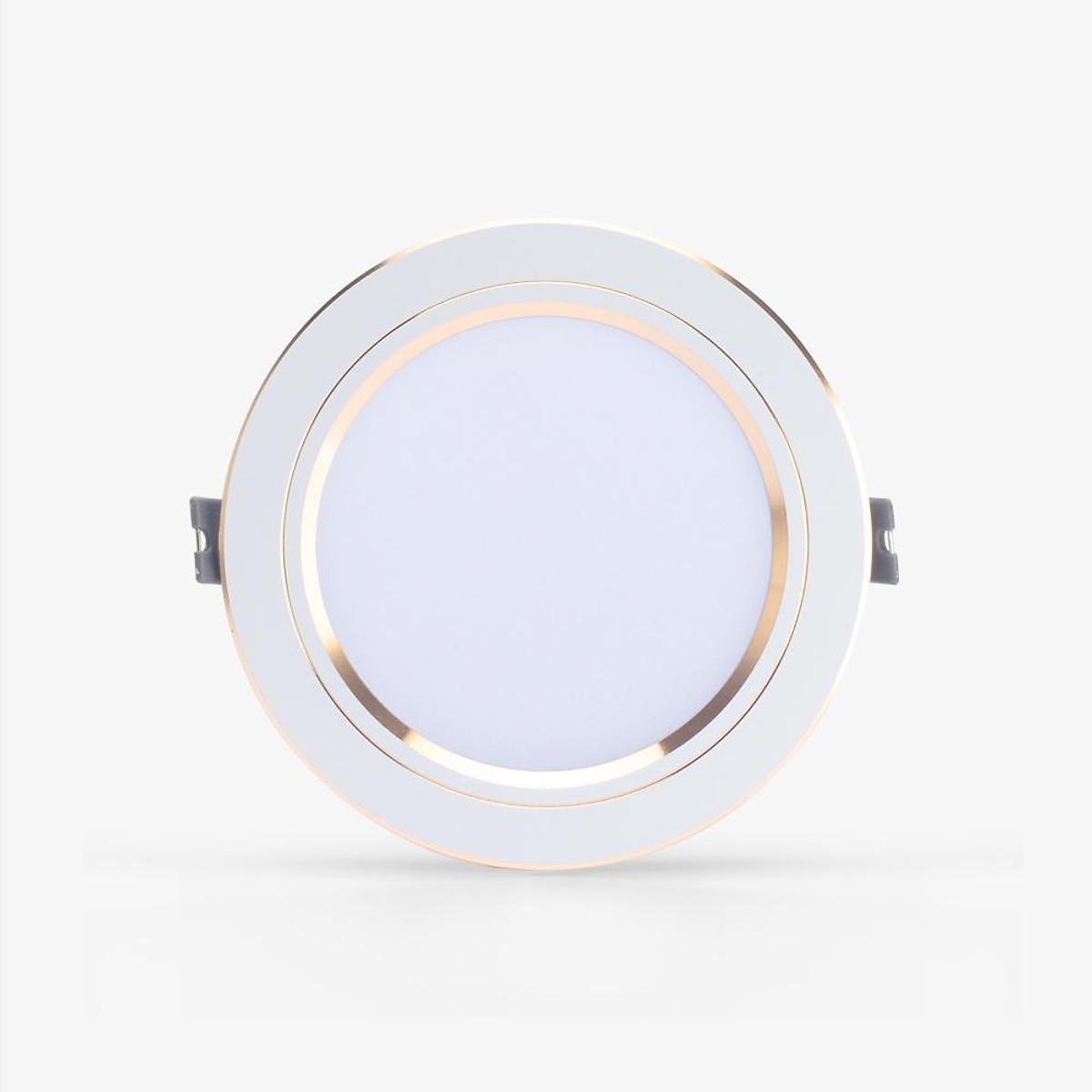 Công suất: 10W Điện áp: 220V/50Hz Quang thông: 1000lm Đổi 3 màu ánh sáng: Trắng/Vàng/Trung tính Kích thước (ØxH): (123x45)mm ĐK lỗ khoét trần: 110mm - Sử dụng Chip LED Hàn Quốc đạt độ tin