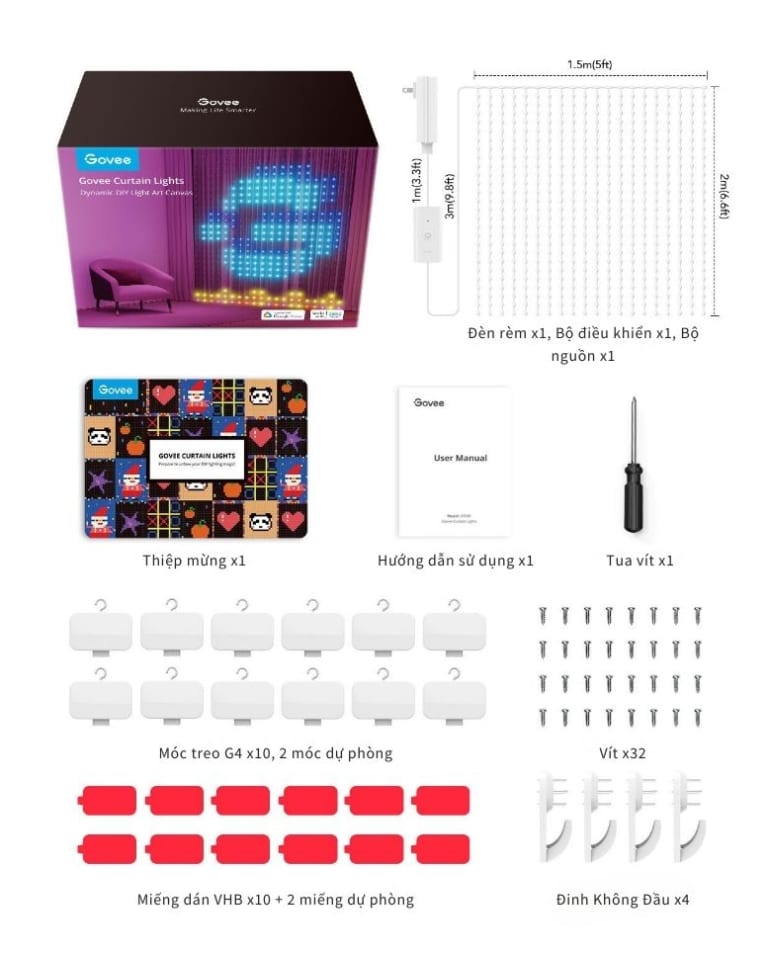 MÔ TẢ ĐÈN LED TRANG TRÍ TƯỜNG GOVEE CURTAIN LIGHTS H70B1 | TẠO HÌNH ĐA DẠNG CÔNG NGHỆ MỚI (2MX1.5M)