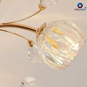 Đèn mâm ốp trần pha lê decor trang trí phòng khách quán coffee phong cách hiện đại 15 bóng Mã MAM15tay-BG9 Bh 24 tháng