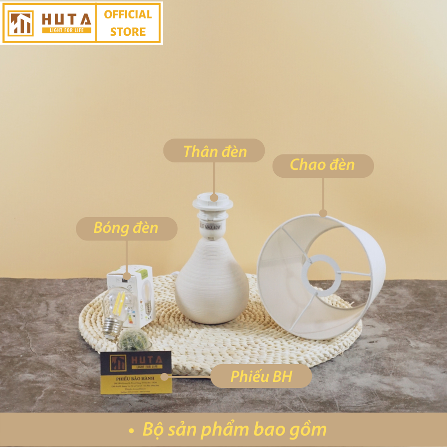 Đèn Ngủ Để Bàn THÂN GỐM SỨ THỦ CÔNG, Chao Vải, Bóng Led E27, dùng trang trí decor - HUTA