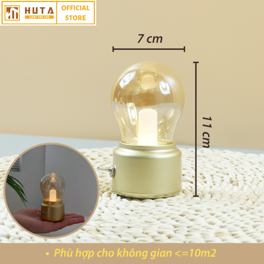 ✨Đèn Ngủ Mini HUTA MN1 Sạc Pin Tích Điện Sáng 25h Cute Dễ Thương, Decor Trang Trí Quán Cà Phê, Nhà Hàng, Để Bàn, Bóng Led Sáng Vàng Tiết Kiệm Điện