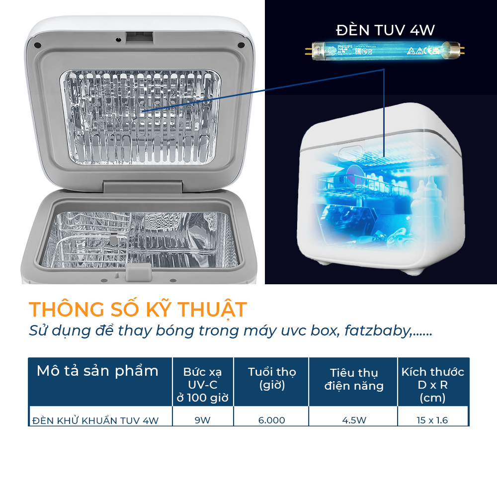 Đèn UV cho máy tiệt trùng Fatz Bóng đèn diệt khuẩn Philips TUV 4W G4 T5