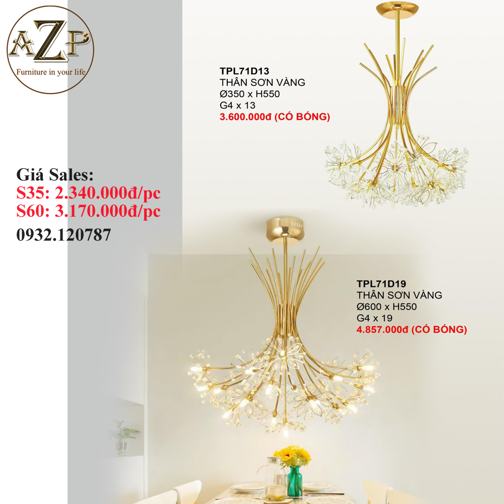 ĐÈN THẢ TRẦN PHA LÊ / ĐÈN THÔNG TẦNG TRANG TRÍ PHÒNG KHÁCH / PHÒNG NGỦ / CẦU THANG / KHÔNG GIAN SANG TRỌNG AZP-71 phong cách đương đại, hàng nhập khẩu AZP