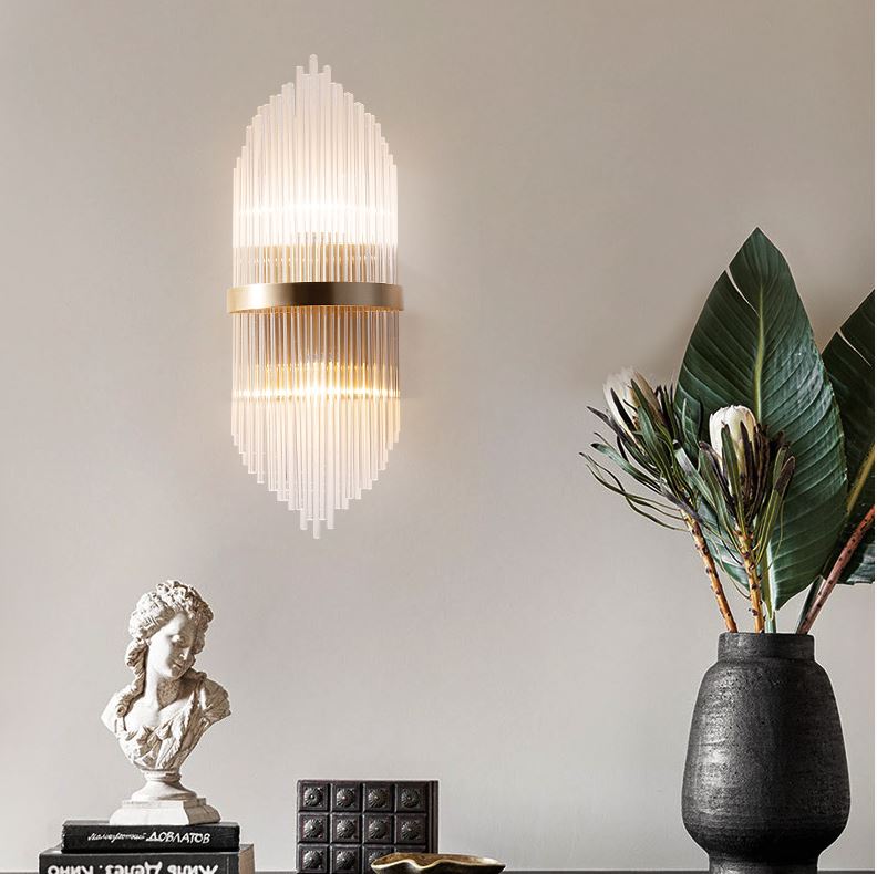 Đèn tường pha lê là loại đèn được thiết kế rất tinh xảo với sự kết nối hài hoà giữa các thanh pha lê với nhau và sự phản chiếu ánh sáng của đèn led