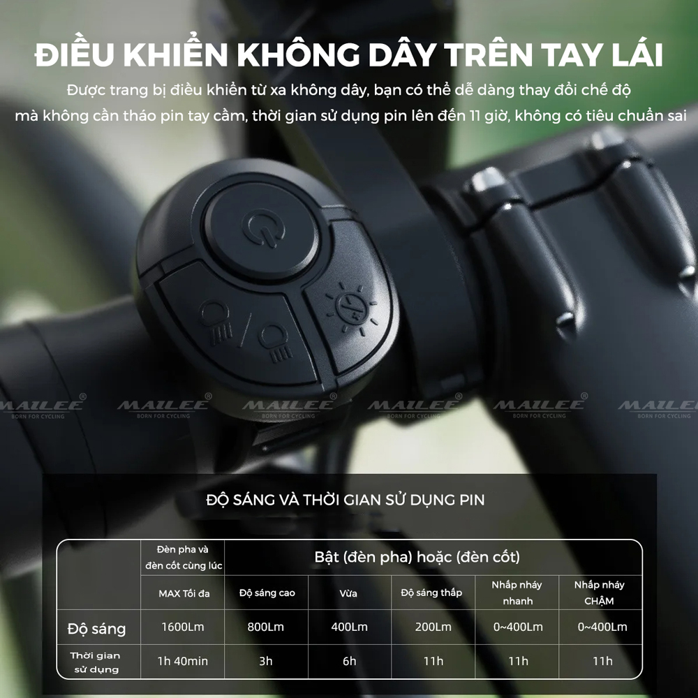 ✨Đèn Xe Đạp Trước CYC 1600 Lumens Chống Chói Có kèm Remote và Giá đỡ, thời gian sử dụng lên đến 11h (tùy chế độ) Đi Đêm Địa Hình Có pha/cos - Mai Lee