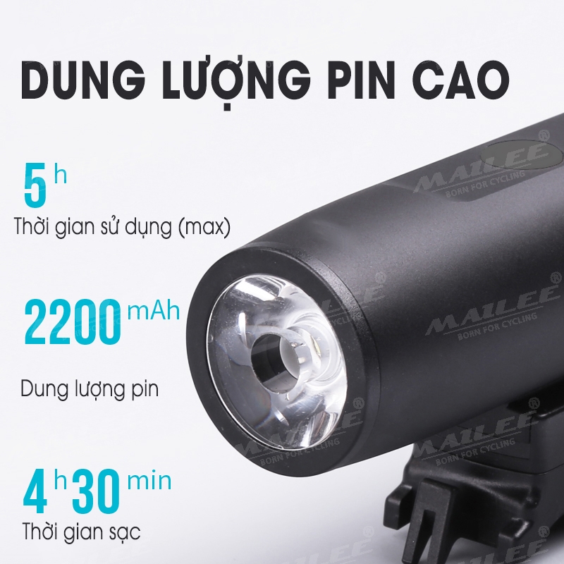 Đèn Trước Xe Đạp Chiếu Sáng Cao Cấp Chống Nước P-023 dung lượng 5200mAh Gắn tay lái, sạc Type-C, sáng max 10h, Có Hỗ trợ Sạc Khẩn Cấp - Mai Lee Thông số kỹ thuật