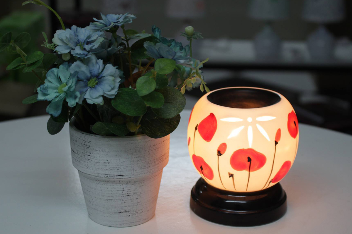 - Bóng đèn công suất lớn sẽ đốt nóng dĩa, làm bốc hơi tinh dầu và khuếch tán tinh dầu đi khắp phòng.