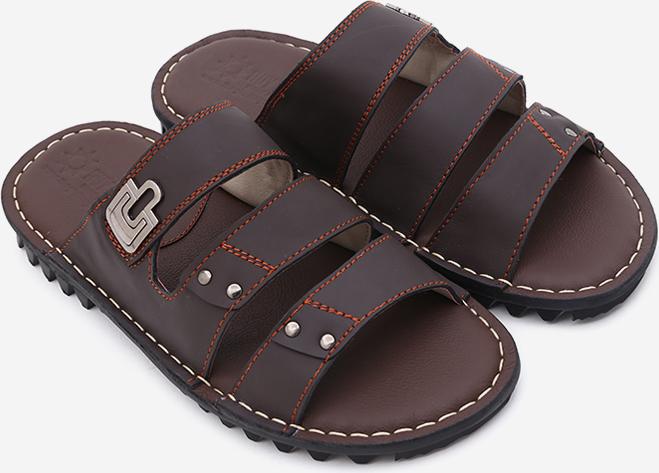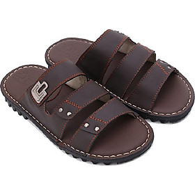Dép nam Huy Hoàng da bò 3 quai màu nâu 7779