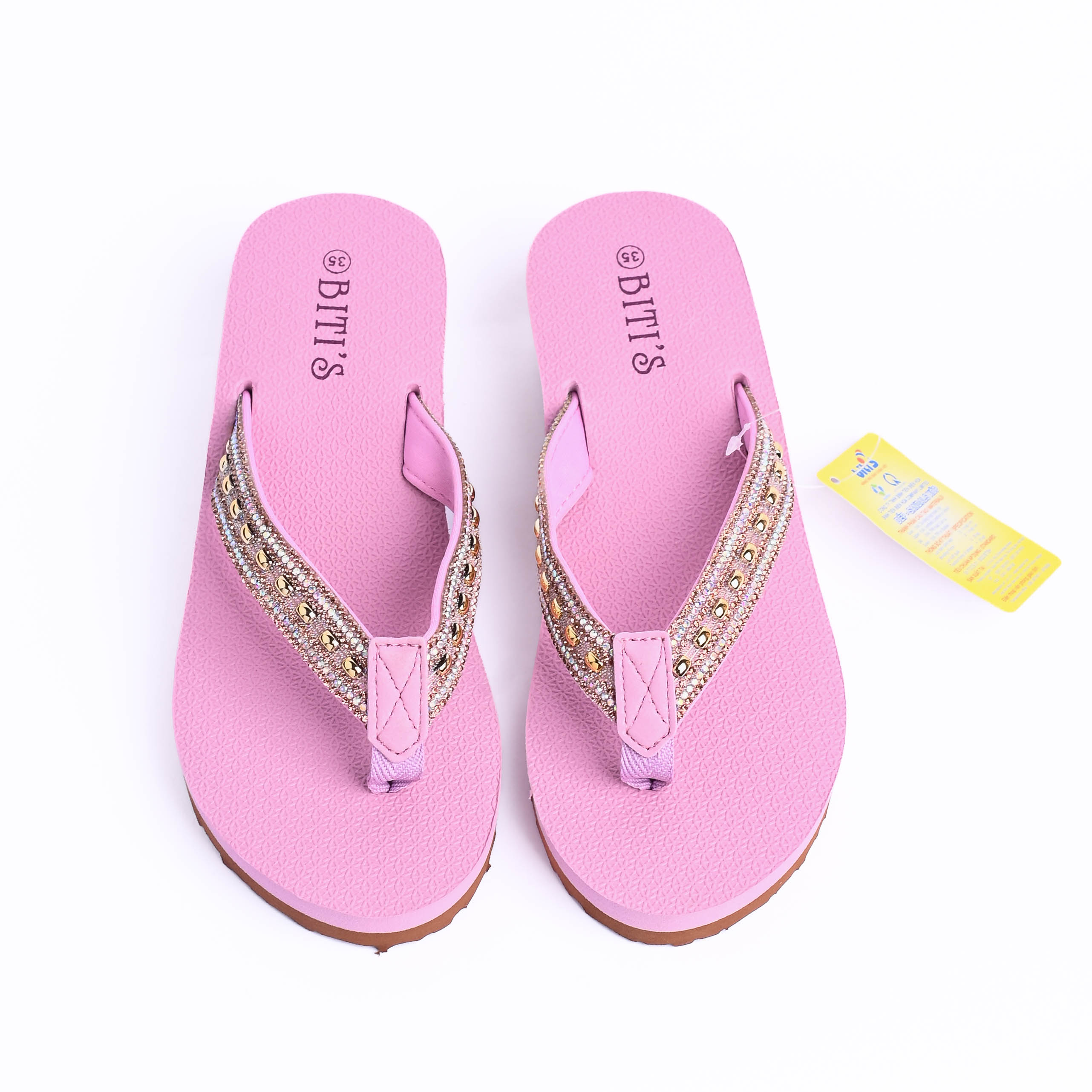 (V) Mô tả sản phẩm: DÉP KẸP NỮ BITI’S – NHẸ ÊM, NỮ TÍNH, DỄ PHỐI Size: 35 - 39 Màu sắc: - Đế xám quai đen đính đá(B) - Đế đen quai đen đính đá(B70) - Đế nâu nhạt quai đen đính đá(73) Mô tả sản phẩm: Dép kẹp nữ Biti’s là lựa chọn hoàn hảo cho nàng yêu thích sự đơn giản nhưng vẫn nổi bật. Thiết kế quai vải bản vừa, điểm nhấn là các hạt đá lấp lánh được đính tỉ mỉ tạo nét thanh lịch, nữ tính. Phần đế EVA nhẹ, êm ái giúp chống trơn trượt, giảm áp lực bàn chân khi di chuyển. Mặt đế có độ bám tốt, thích hợp sử dụng trong nhiều điều kiện thời tiết. Ưu điểm nổi bật: - Thiết kế dịu dàng, phù hợp đi chơi, đi biển, dạo phố - Đính đá thủ công tỉ mỉ, không bong tróc - Đế mềm, nhẹ, êm chân – dễ đi cả ngày dài - Cam kết chính hãng 100% từ thương hiệu Biti’s
