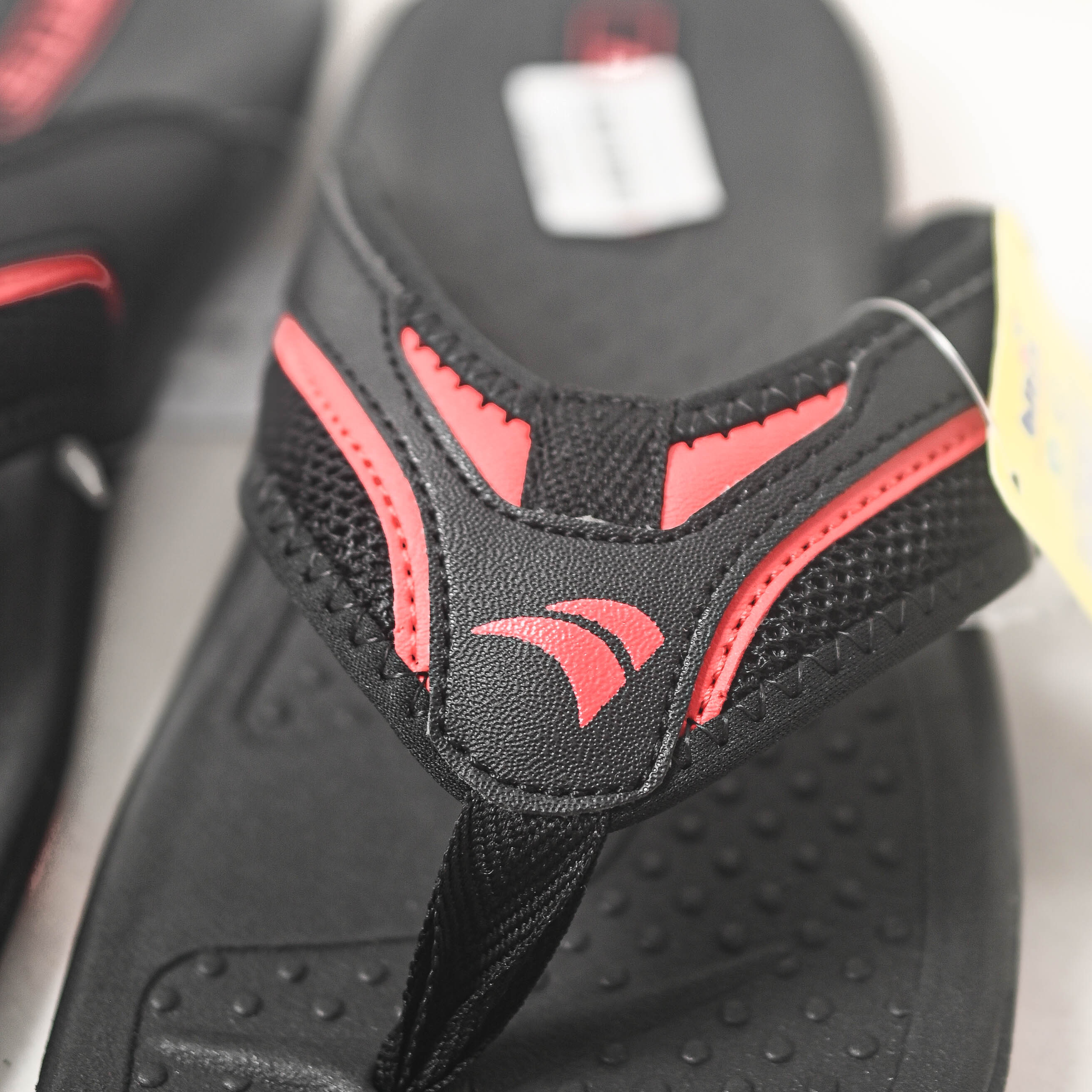 - Thiết kế - Kiểu dép kẹp (xỏ ngón) trẻ trung, năng động. - Quai ngang bản to, màu đen, tạo sự chắc chắn. - Logo màu đỏ nổi bật, tăng điểm nhấn thời trang.