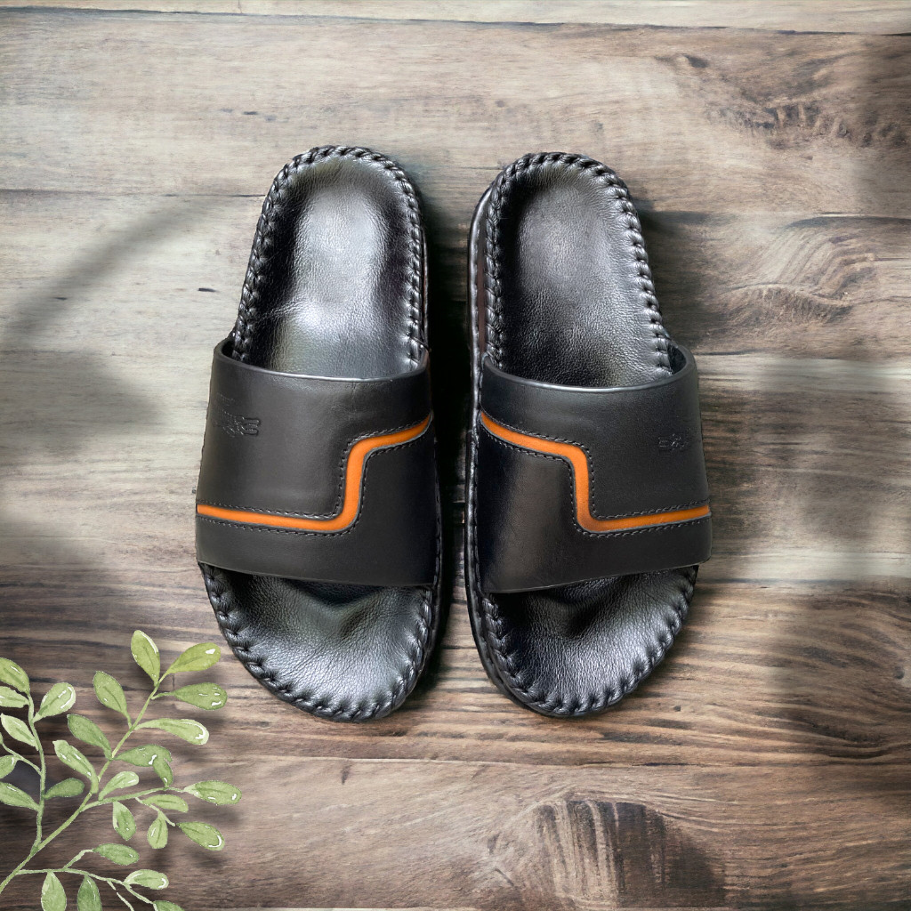 Dép Da Nam - Lịch Lãm & Thoải Mái Mỗi Ngày - Chất liệu cao cấp: Sử dụng da tổng hợp chất lượng, mềm mại, bền bỉ theo thời gian, mang lại cảm giác êm ái và thoáng khí cho bàn chân. - Thiết kế sang trọng: Tông màu đen lịch lãm, kết hợp với đường chỉ may tinh tế và logo kim loại nổi bật – tôn lên vẻ nam tính, trưởng thành. - Đế chống trượt: Đế EVA siêu nhẹ, độ đàn hồi tốt, kết hợp vân đế tăng độ ma sát – an toàn khi di chuyển trên nhiều bề mặt. - Form ôm chân: Thiết kế bản quai ngang rộng, ôm gọn bàn chân nhưng không gây bí bách, dễ xỏ vào – thích hợp cho người trung niên và người lớn tuổi. - Ứng dụng đa năng: Phù hợp sử dụng trong nhà, đi dạo phố, đến văn phòng hoặc các dịp gặp gỡ thân mật. Lựa chọn tuyệt vời cho quý ông yêu thích sự thoải mái, đơn giản nhưng vẫn giữ được nét tinh tế trong từng bước chân.