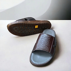 DÉP NAM BA QUAI DA BÒ,QUAI CÓ GẮN KHUY ĐẸP MẮT Dép quai ngang cá sấu da bò 100% Chất liệu: Da bò thật thật 100% da bò tự nhiên Đế cao su tốt đi