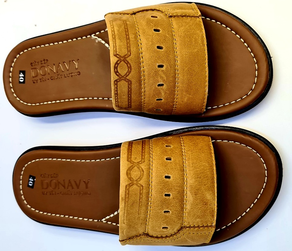 Mua tại TiktokDép quai ngang nam da bò 100%, quai 02 lớp da Bò Donavy cao cấp may full quai và đế rất chắc chắn DONAVY1MC Chất liệu: Da bò thật 100% da bò tự nhiên Đế cao su tốt đi siêu êm, chống chơn, trượt. Da được may vào đế cẩn thận, đẹp bao đi nước Hàng đảm bảo giống hình