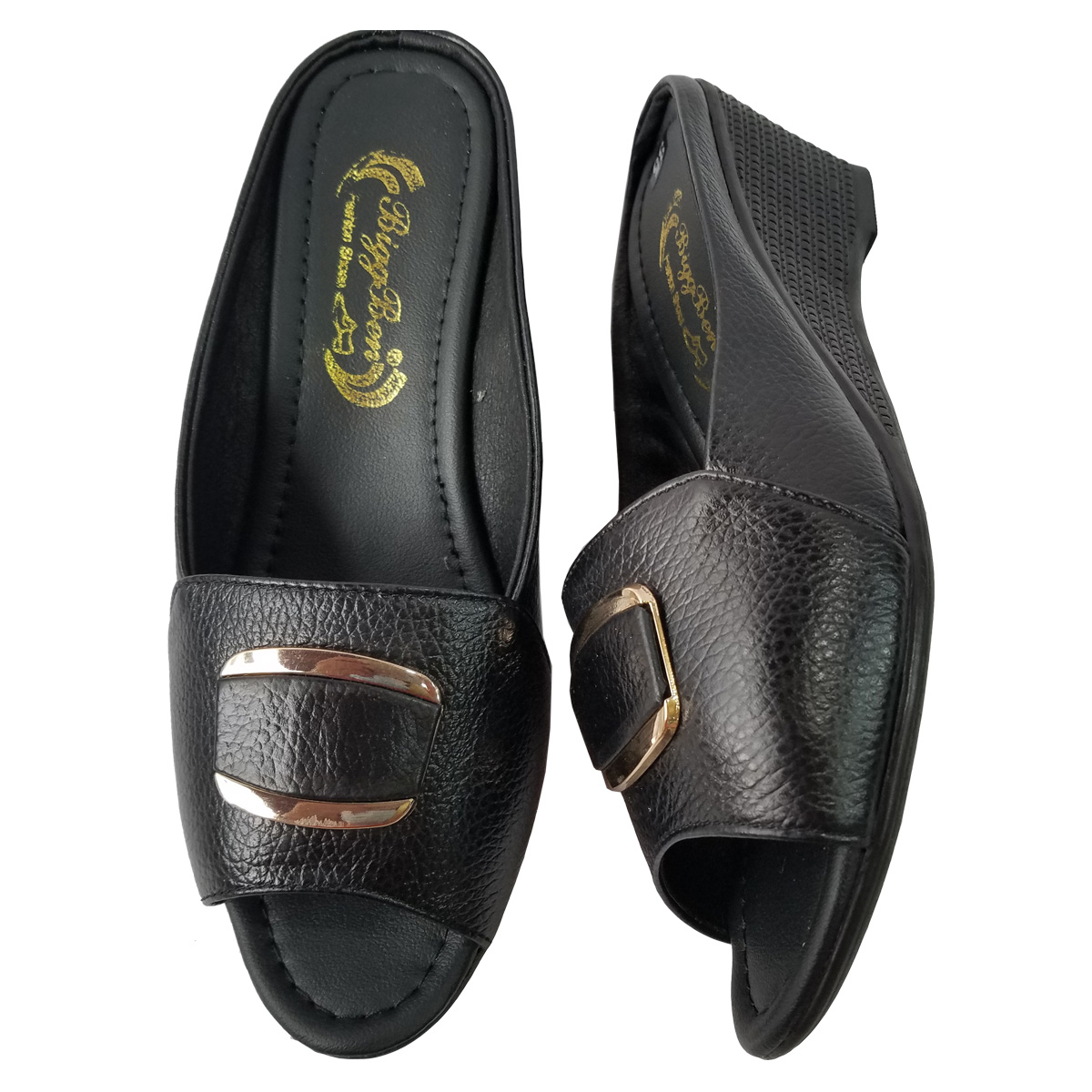Giày Sục Nữ Giày Đế Xuồng Da Bò Thật Cực Mềm Gót Cao 5cm Evelynv 5P1816 (Đen)