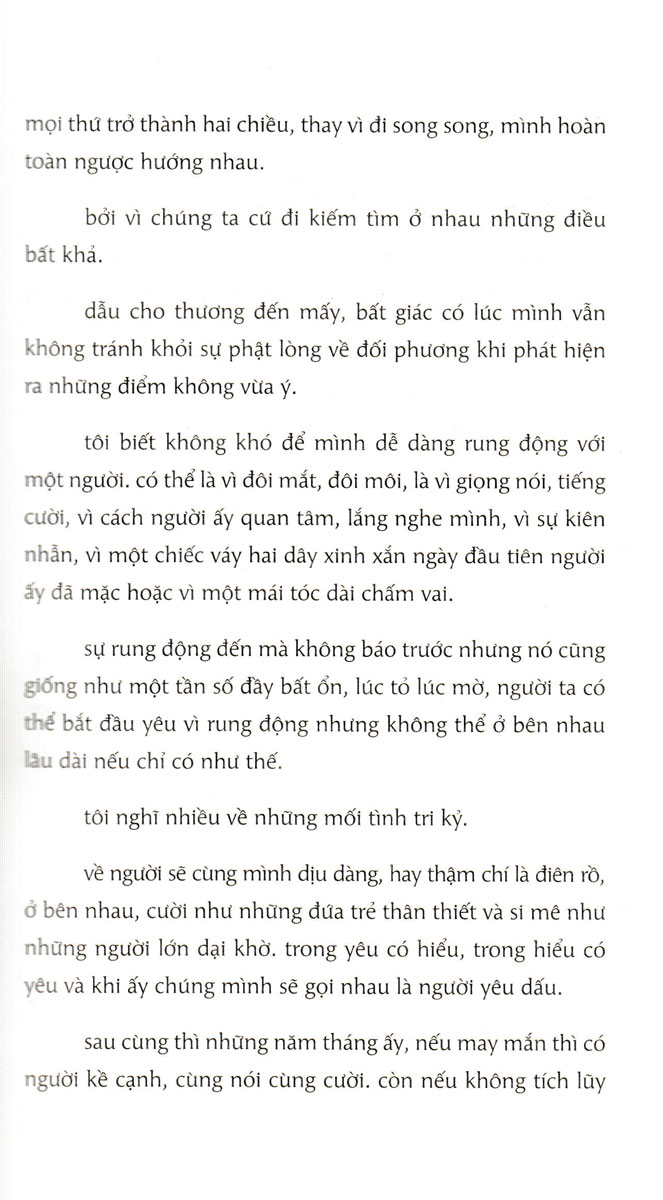 LƯU Ý : SÁCH CHỈ TẶNG KÈM QUÀ CHO BẢN IN ĐẦU TIÊN Yêu Đi Đừng Sợ Bạn sẽ chẳng bao giờ có được hạnh phúc nếu cứ cố chấp giữ lấy khổ đau. Bạn sẽ chẳng bao giờ có cơ hội gặp được người đàn ông tốt nếu cứ cố chấp giữ lấy người đàn ông làm mình thương tổn. Và bạn sẽ chẳng bao giờ có được một tương lai tốt đẹp hơn nếu không thể vứt bỏ được thực tại đen tối. “Yêu đi đừng sợ” của tác giả Kim Oanh là cuốn sách dành cho những trái tim còn đang lẻ bóng, cho những tuổi trẻ còn mang vết thương lòng từ mối tình đã cũ, giúp họ nhận ra ai trong chúng ta cũng có quyền hạnh phúc. Có thể mối tình tuổi trẻ của bạn sẽ trôi qua suôn sẻ hoặc không, có thể bạn sẽ tổn thương, có thể bạn sẽ mất niềm tin, mất đi sự ngây thơ, nhưng tuyệt đối không được đánh mất chính mình. Qua 216 trang sách, tác giả Kim Oanh vẽ ra trước mắt chúng ta những bức tranh tình yêu đầy hiện thực, giúp bạn nhận ra hạnh phúc của mỗi cá nhân thì ngoài chính mình ra, không ai có thể định đoạt và chịu trách nhiệm thay được. Nếu bất hạnh, nếu khổ đau, xin đừng ngần ngại trao cho mình quyền lựa chọn một cuộc sống khác, một hạnh phúc khác. Hạnh phúc đó có thể là một mình, là với cha mẹ, với bạn bè hay với tình yêu mới khiến tim bạn xuyến xao. “Yêu đi đừng sợ” là một món quà tuyệt vời để an ủi, cổ động tinh thần cho những người đã yêu, đang yêu và sẽ yêu trên con đường bước tới một tình yêu mới hạnh phúc hơn, can đảm hơn. Ở một nơi nào đó trên thế giới này, có một người đang chờ đợi bạn, có một người sẽ xoa dịu nỗi đau của bạn và cho bạn biết thế nào là tình yêu đích thực. Mong rằng sau khi gập lại những trang sách cuối cùng, bạn sẽ nhẹ nhàng đón nhận mọi mối lương duyên trong đời, cho mình một cơ hội để yêu và được yêu hết mình, vì bạn xứng đáng được hạnh phúc!
