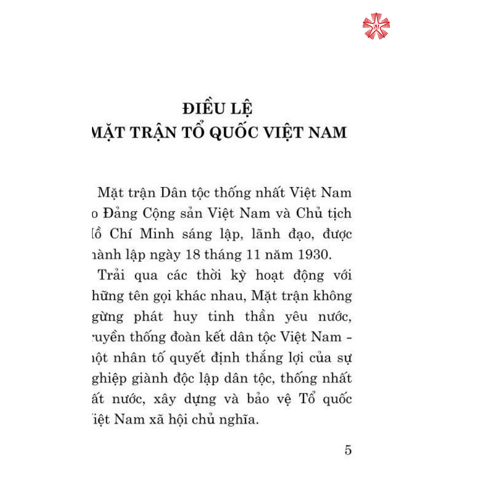 Mua tại TiktokCuốn sách giới thiệu toàn bộ nội dung Điều lệ Mặt trận Tổ quốc Việt Nam được Đại hội đại biểu toàn quốc Mặt trận Tổ quốc Việt Nam lần thứ IX thông qua ngày 20/9/2019.