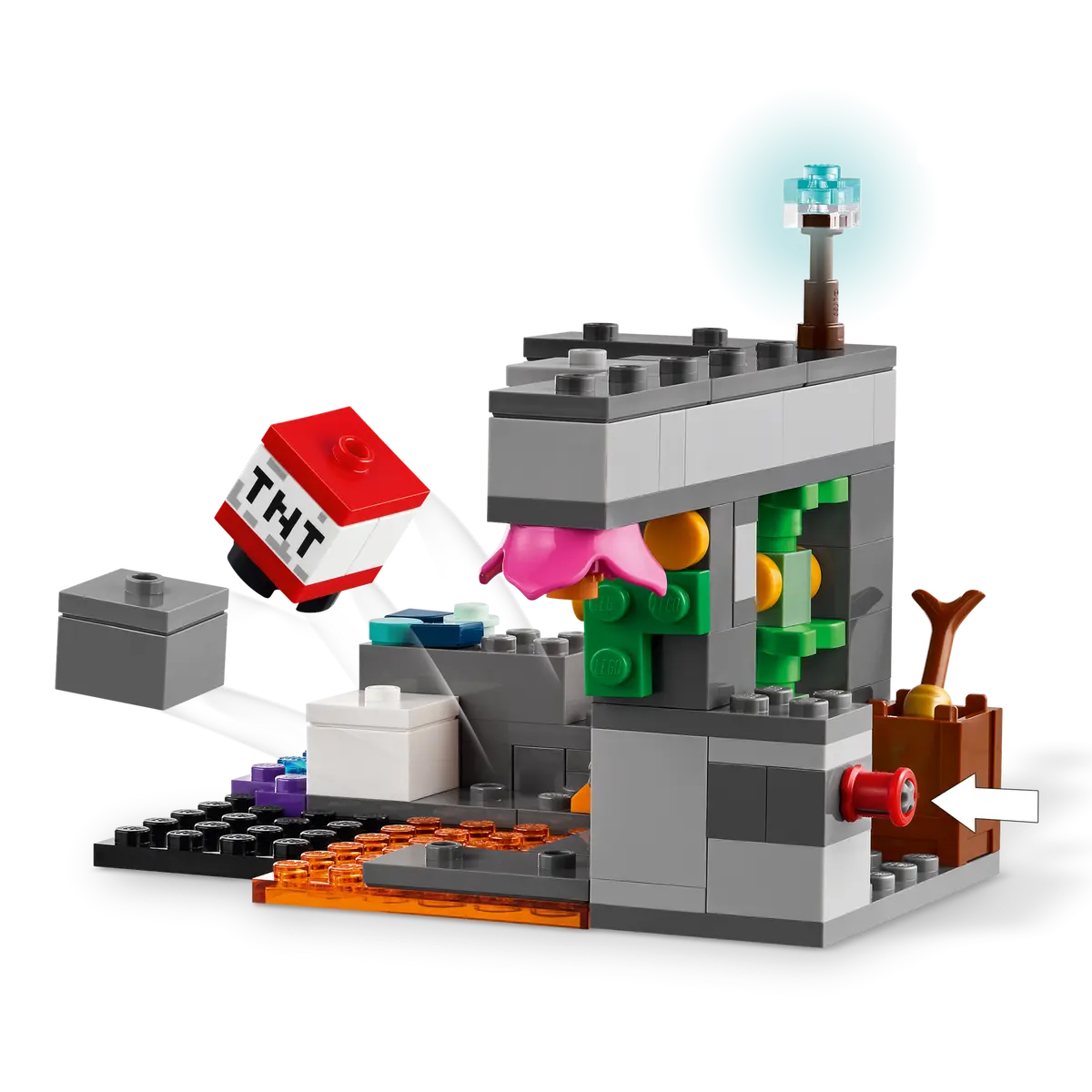 - Phá vỡ hang động tươi tốt, sâu thẳm bằng thuốc nổ TNT. Khám phá những viên kim cương ẩn sau tán lá và thu thập đá thạch anh tím – nhưng hãy cẩn thận với đá rơi! Khi Warden hùng mạnh cố gắng ngăn cản việc khai thác của bạn, hãy dùng bóng tuyết, một con gà và quả trứng để đánh lạc hướng nó. Đừng quên sử dụng cà rốt vàng và thuốc để duy trì sức mạnh cho mọi cuộc phiêu lưu và hành động đang chờ đón bạn bên trong hang động tươi tốt! Đồ chơi trò chơi điện tử LEGO Cuộc Chạm Trán Warden dành cho người chơi Minecraft
