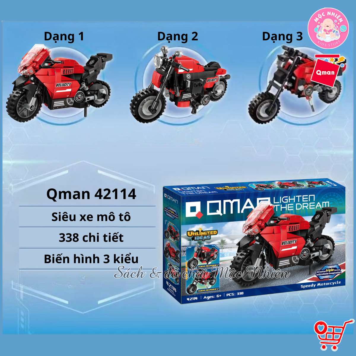 ✨Đồ chơi lắp ráp, xếp hình Qman 42114 - Mô Tô Thể Thao (338 mảnh ghép)