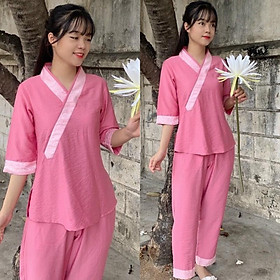 Quần áo phật tử, đồ lam đi chùa mẫu bà lai gấm #quanaophattu
