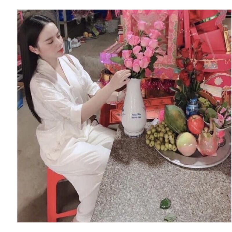 Quần áo đi chùa - Bộ thêu hoa 3D màu trắng - Tâm An Store