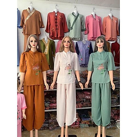 Đồ lam đi chùa cho nữ - Set mẫu xẩm quạt thêu Hoa chất liệu lụa trượt cao cấp phong cách lịch sự